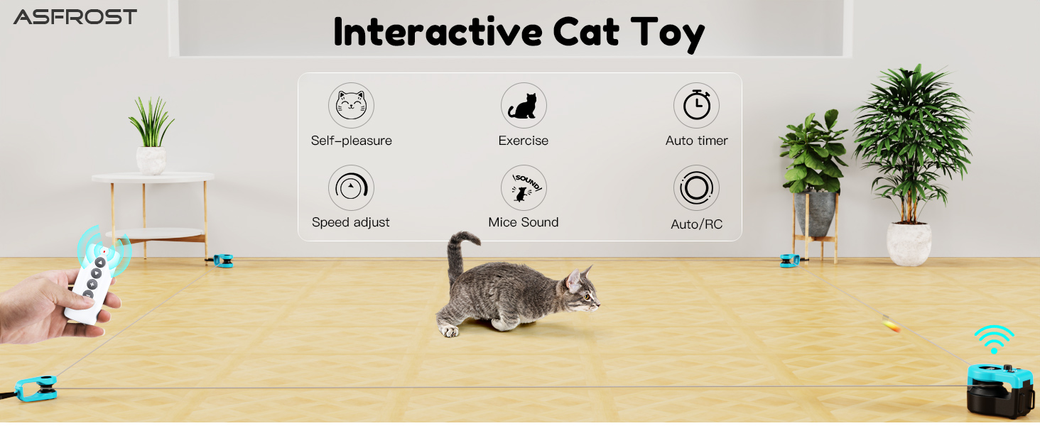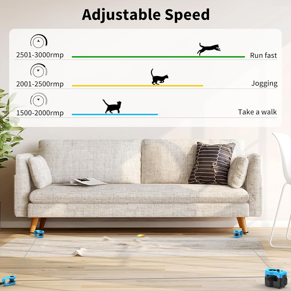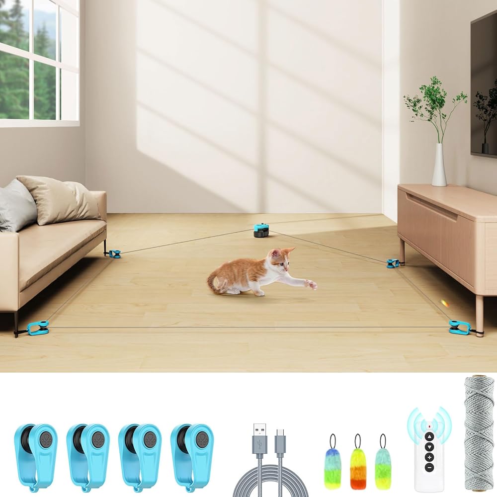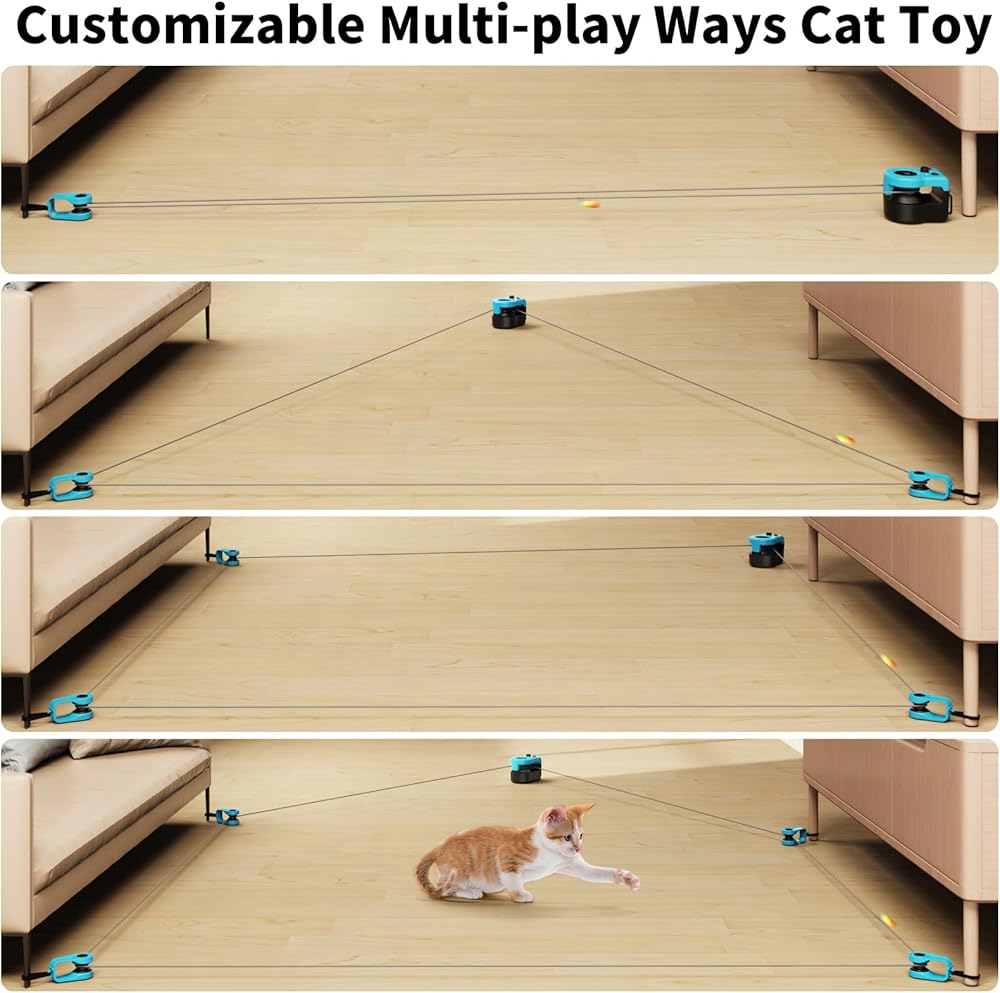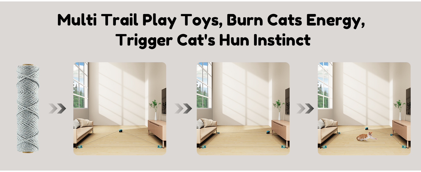 DIY Multi-Play-Way Cat Interactive Toy: This interactive cat chase toy is equipped with 4 fixed wire clips so that owners can freely set a variety of running trajectories(triangle/quadrilateral/pentagonal trajectories etc.) to stimulate the cat to chase play and help keep your indoor cat physically and mentally active! Support DIY like tying other soft feather replacements to explore more fresh experiences between you and your feline friends.