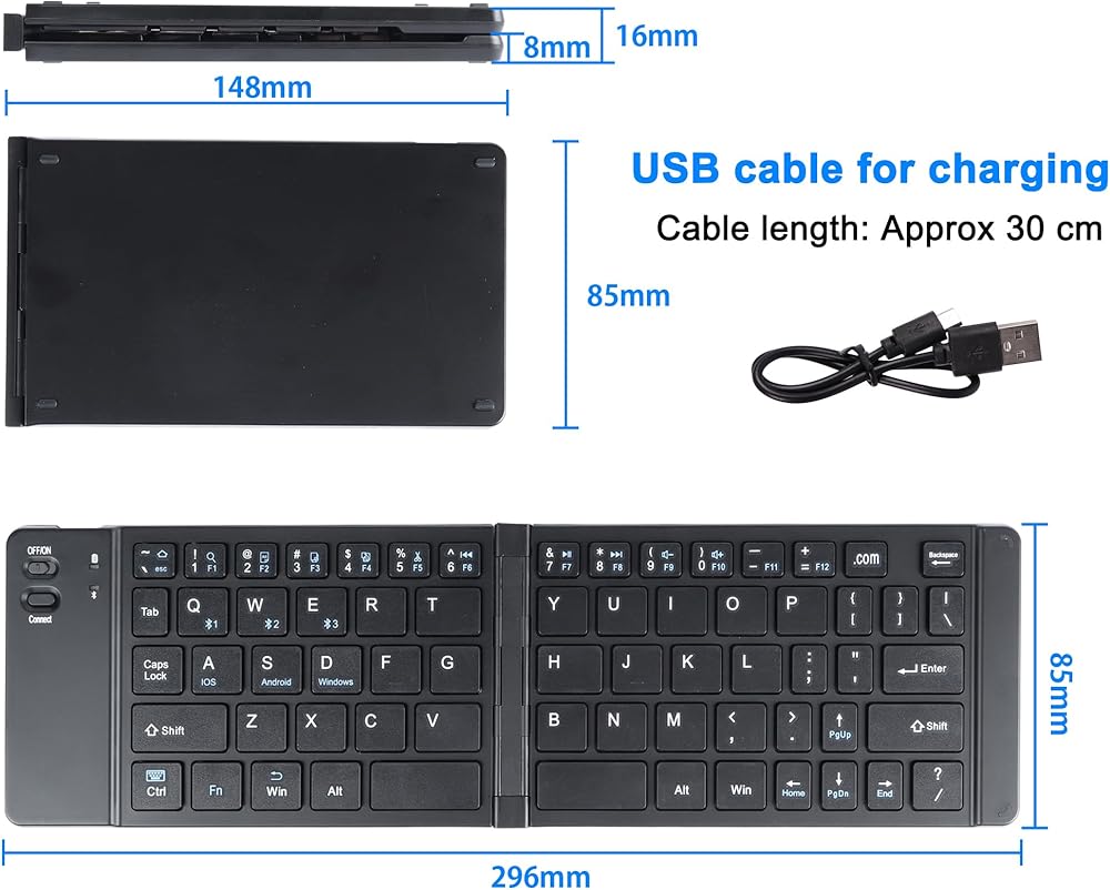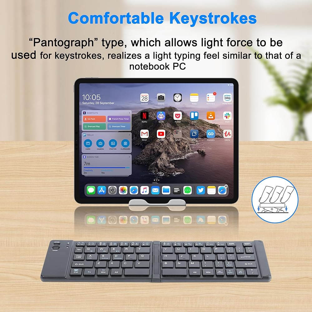【Widely Compatibility】This foldable keyboard bluetooth is compatible with iOS, Android and Windows operating systems. The pocket size wireless keyboard bluetooth is suitable for iPhone, Android, Windows Tablet, PC and Windows Phone and other devices.