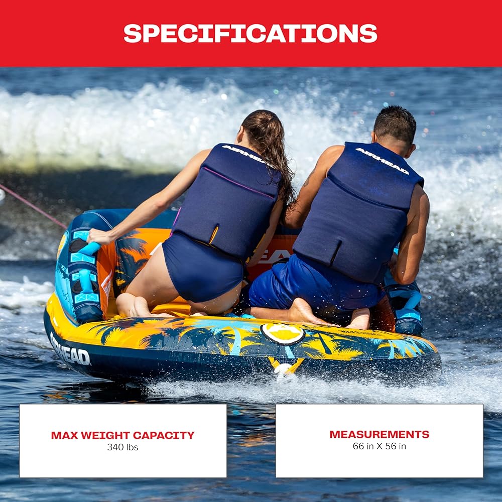 Capacity: The rider tube is designed to accommodate 1-2 riders, for up to 2 riders doing water activities and various watersports. Its size and capacity allow individuals or groups to enjoy the ride.