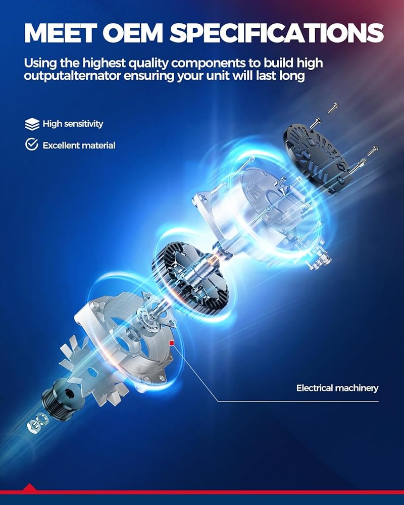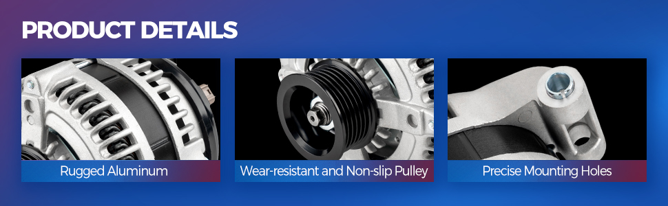 Upgraded Alternator : Alternators feature high-quality bearings with high-temp lubricant and double-lip rubber seals to reduce friction, vibration and noise; Rotors and stators calibrated and then sealed with secondary insulating coating to help prevent shorts.