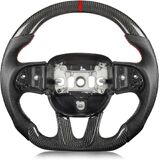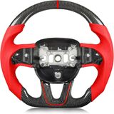 Full Leather Steering Wheel for Dodge Charger/Challenger/Durango 2015–2024, D-Shape Flat-Bottom Design with Perforated Leather Grip and Hand-Stitched Accents
