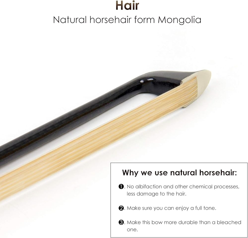 The horsehair of our viola bow are from Mongolia horsehair,it is so nice neat and durable that can hold the rosin well.