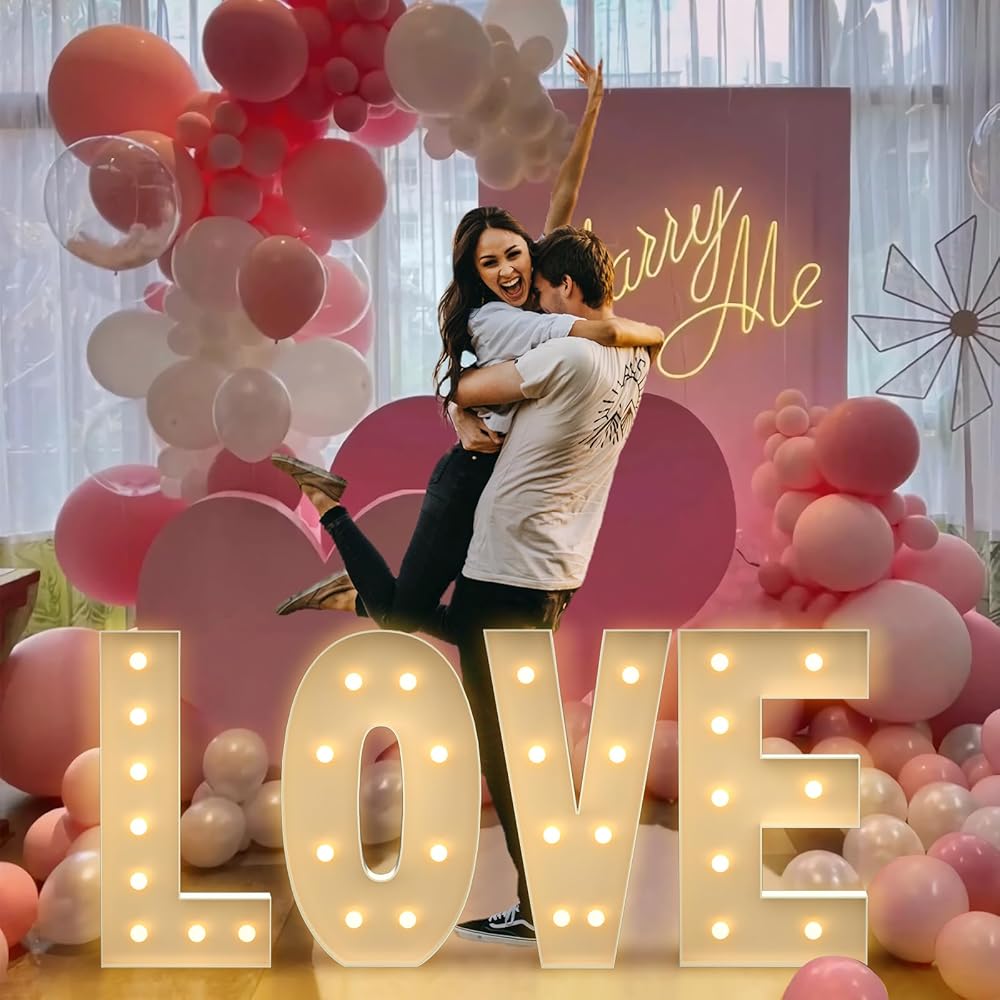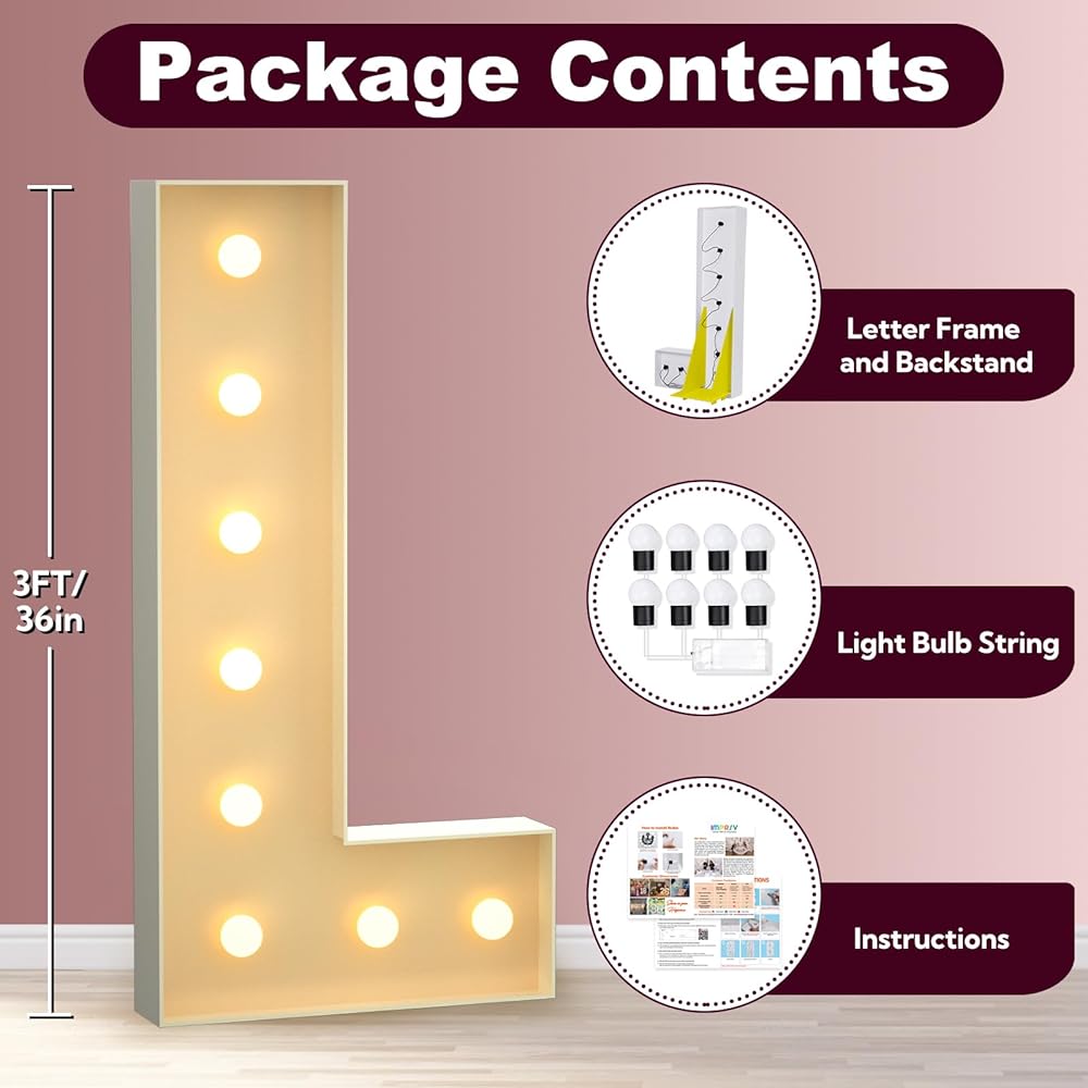 【THE PACKAGE KIT INCLUDES】Foam board base for letters, foam board sides for letters, instruction manual and light bulb string. Balloons and hot glue guns are not included.