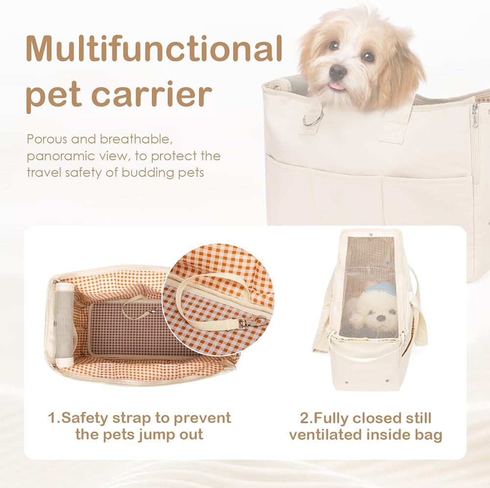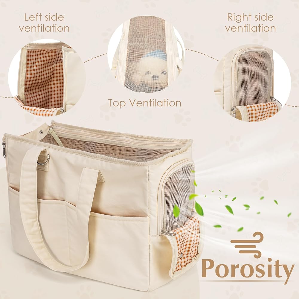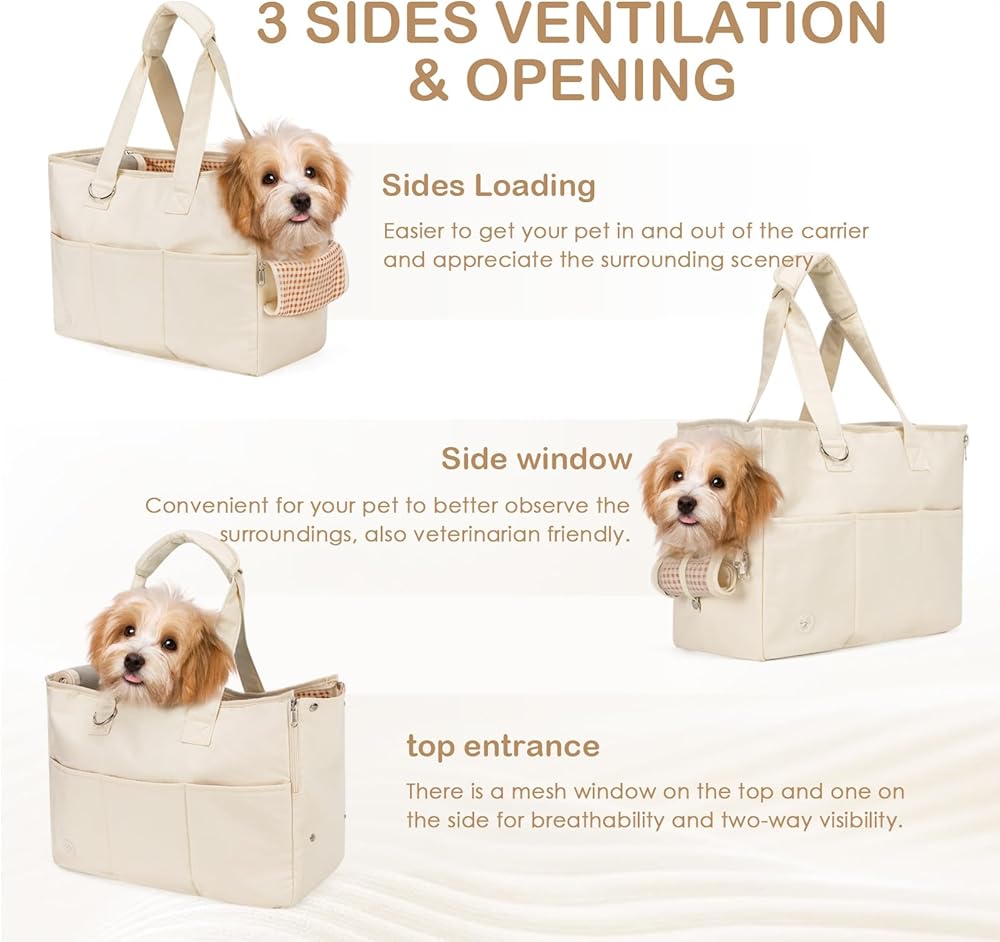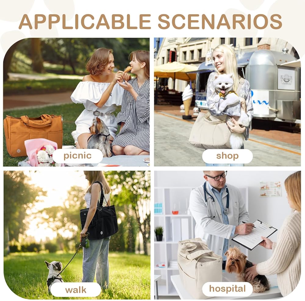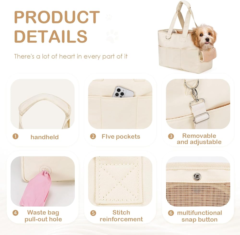 [Pet Parent-friendly features] The small dog purse carrier, with 5 large pockets for storage. There's also a pocket for a poop bag, keeping your hands free. Designed with multiple pockets to carry your pet's snacks, water bottle, and your phone, freeing your hands.