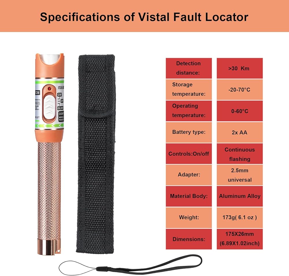 【High Efficiency】Easy identification of fiber breakpoints, poor connecttions, bending or cracking. Excellent for finding the right fiber to splice or quickly finding a break. Our 30mW Visual Fault Locator can be used for fiber tracing, fiber routing and continuity checking efficiently.