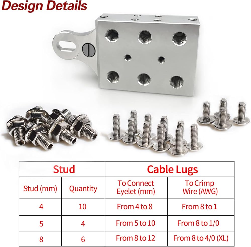 Vgate 20-Way Post Terminal Distribution Block Bus Bar, 8AWG up to 4/0(XL) AWG Gauge, for Lithium or AGM Lead Acid Battery with Bolt Down Ends or Threaded Studs, M6 or 1/4"-20