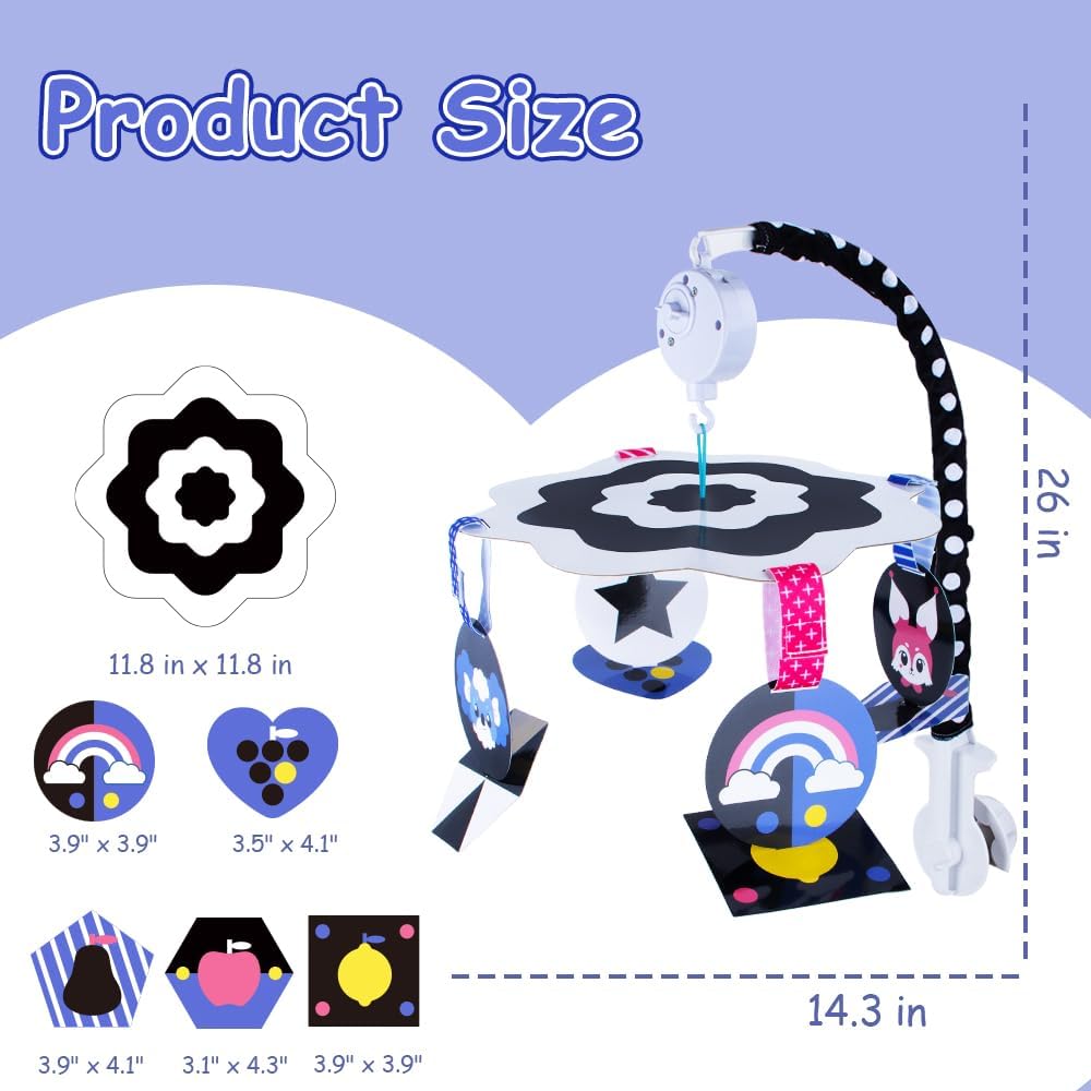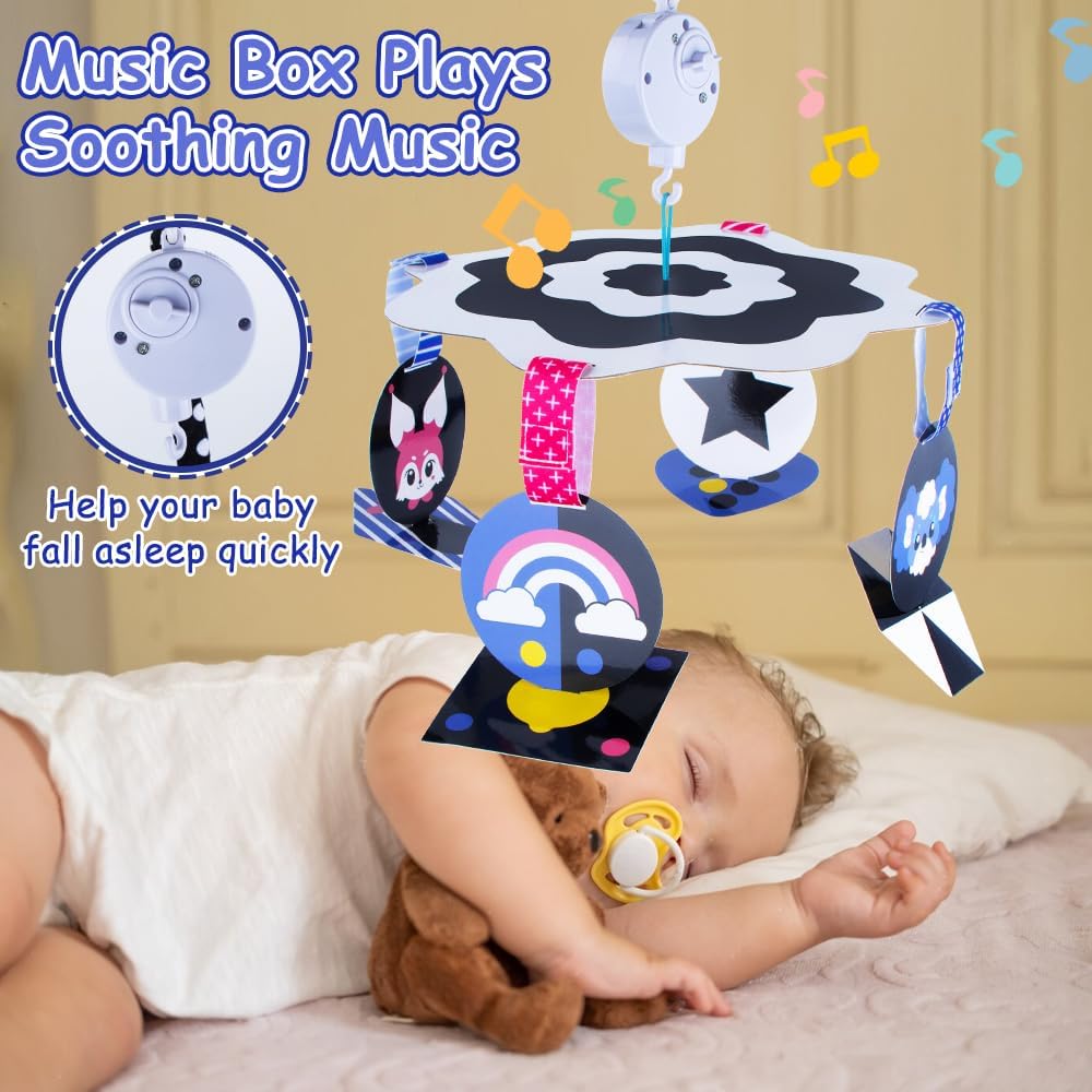 Baby Crib Mobile with Calming Music Rotation - Black and White High Contrast Nursery Mobile for Visual Stimulation and Development Baby Mobile for Crib for Newborn Infants, Boys, and Girls