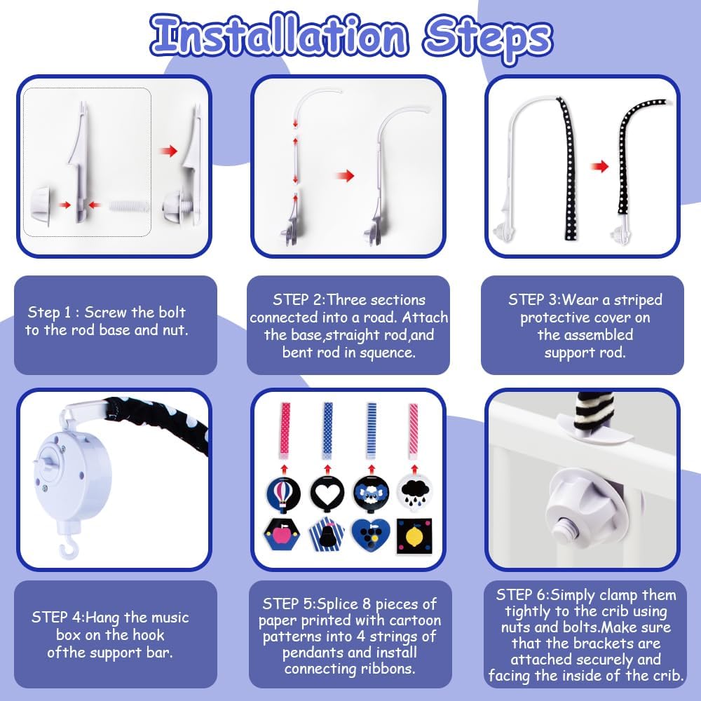 Safe Material: The crib mobile is made of safe ABS material, so parents can use it for their babies with confidence. Our original intention is to bring joy to children while keeping them safe.