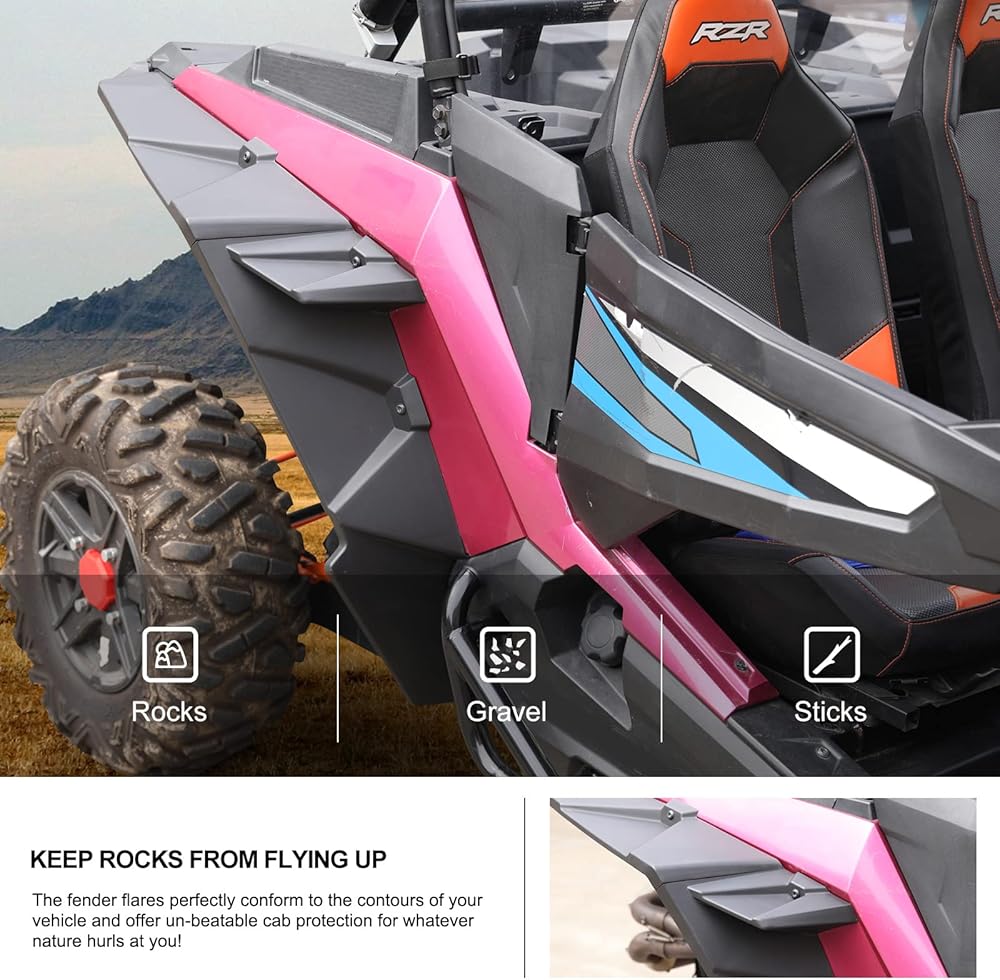 ▶ PERFECT FIT RZR XP 1000 FENDER FLARES - Fit for 2014-2023 Polaris RZR XP/4 1000. These are a necessity if you don't want to be covered in mud while riding or gave the interior coated in mud.