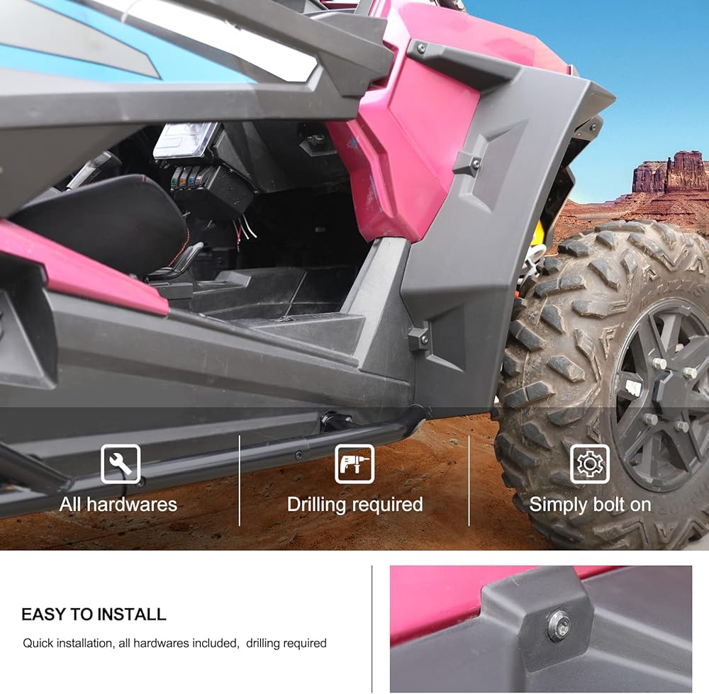 KIWI MASTER 8.5 inch Full Coverage Fender Flares for 2014-2023 Polaris RZR XP/4 1000/Turbo Accessories Front & Rear Widened Fenders Extended Mud Flaps Guards Black
