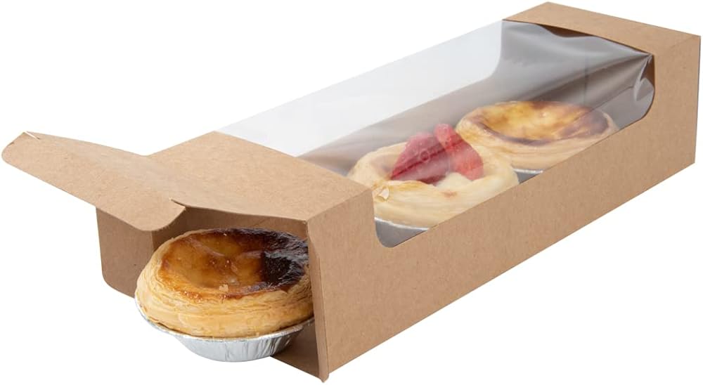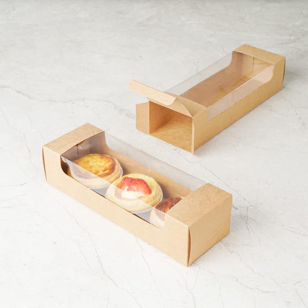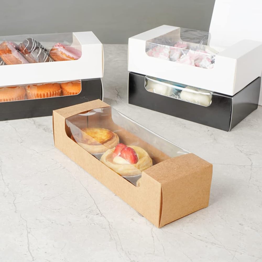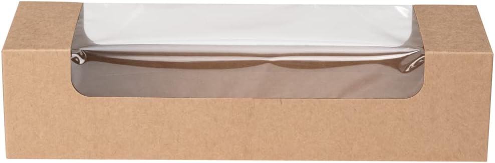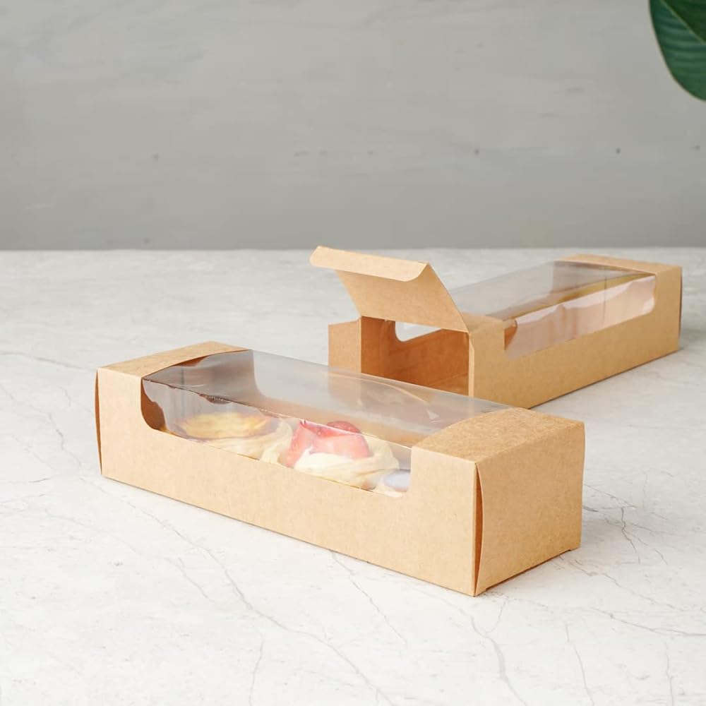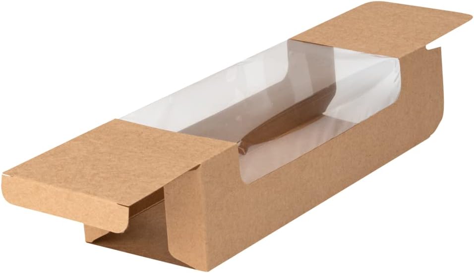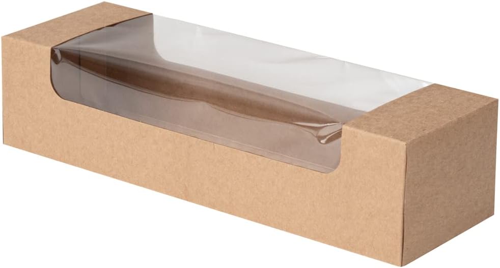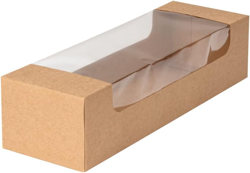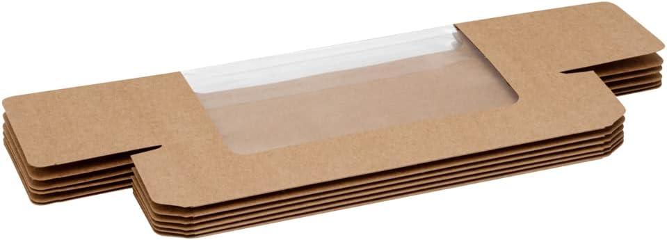100 BOXES PER ORDER: Don't worry about running out! These brown treat boxes with windows measure 9.8 inches in length by 3.2 inches in width by 2.4 in height. Each order ships 100 boxes.