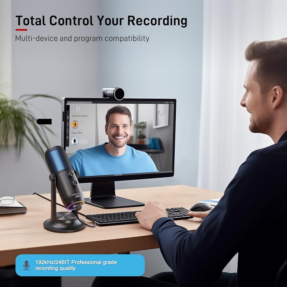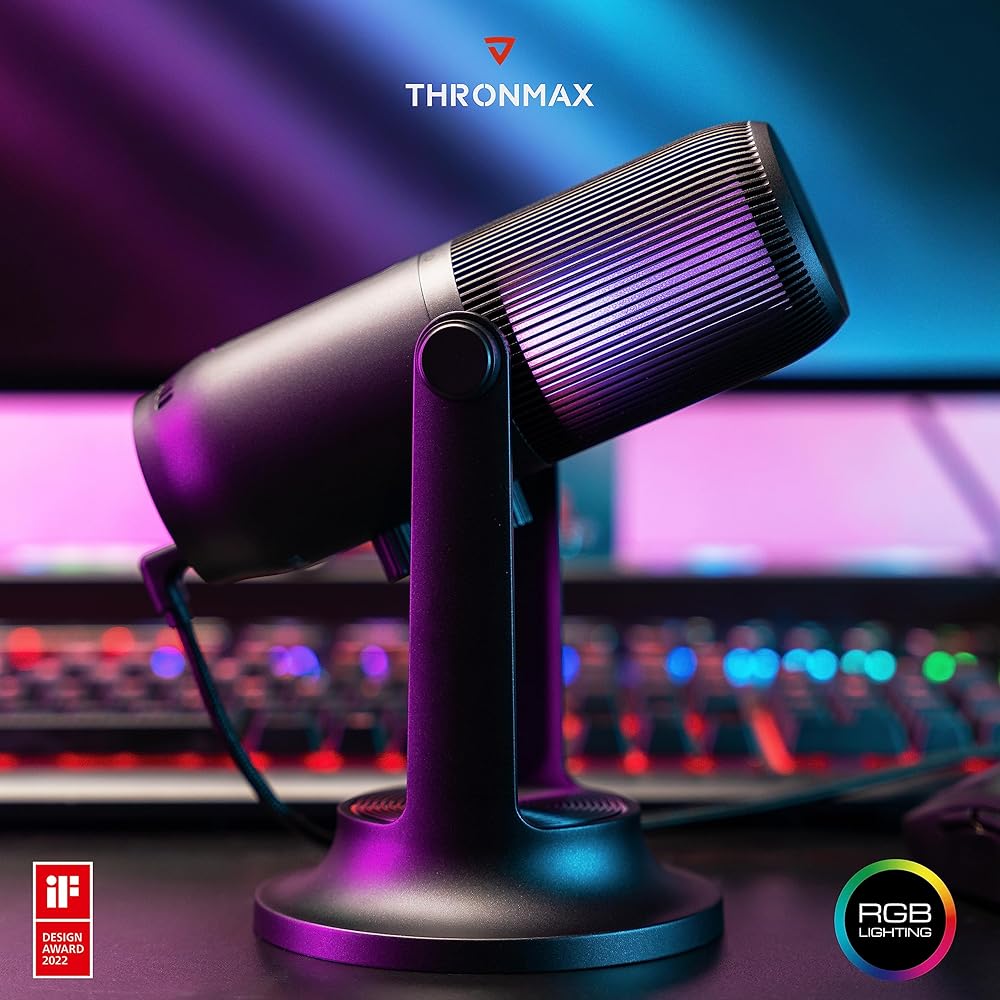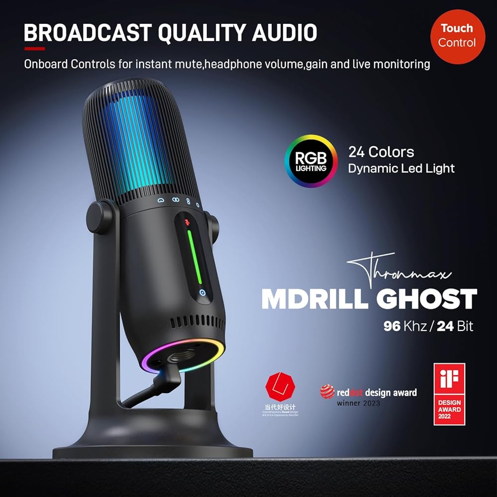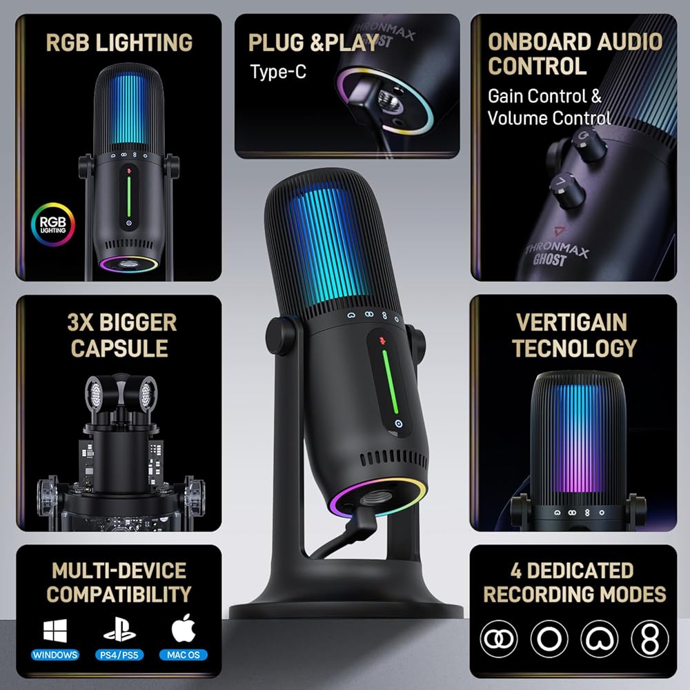 THRONMAX M2 Ghost RGB Condenser Microphone for Professional Quality Streaming and Recording|Gaming Mic for PC, PS4 and Mac|Voice-Isolating Technology|USB-C Output|4 Pickup Patterns|96Khz 24 Bit,Black