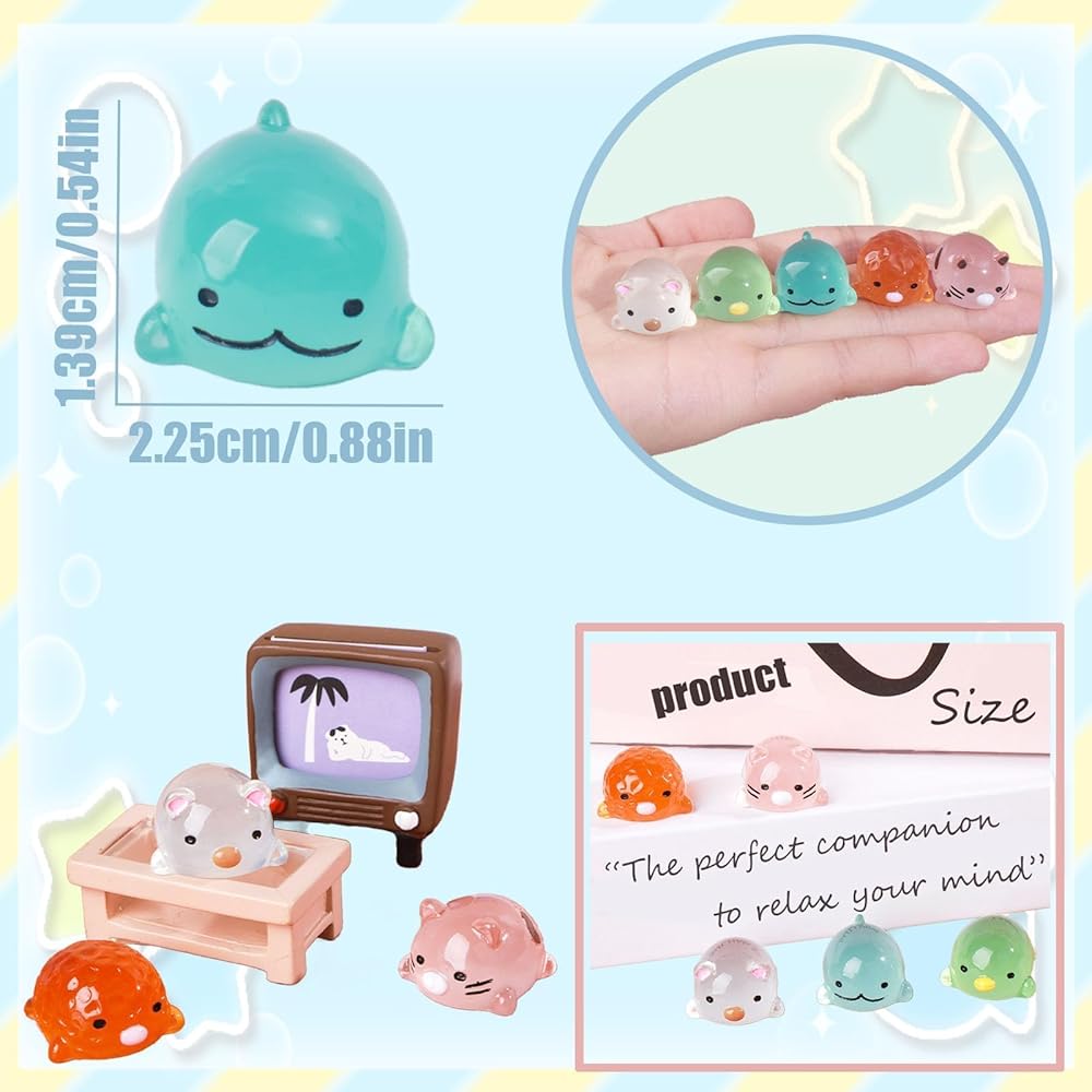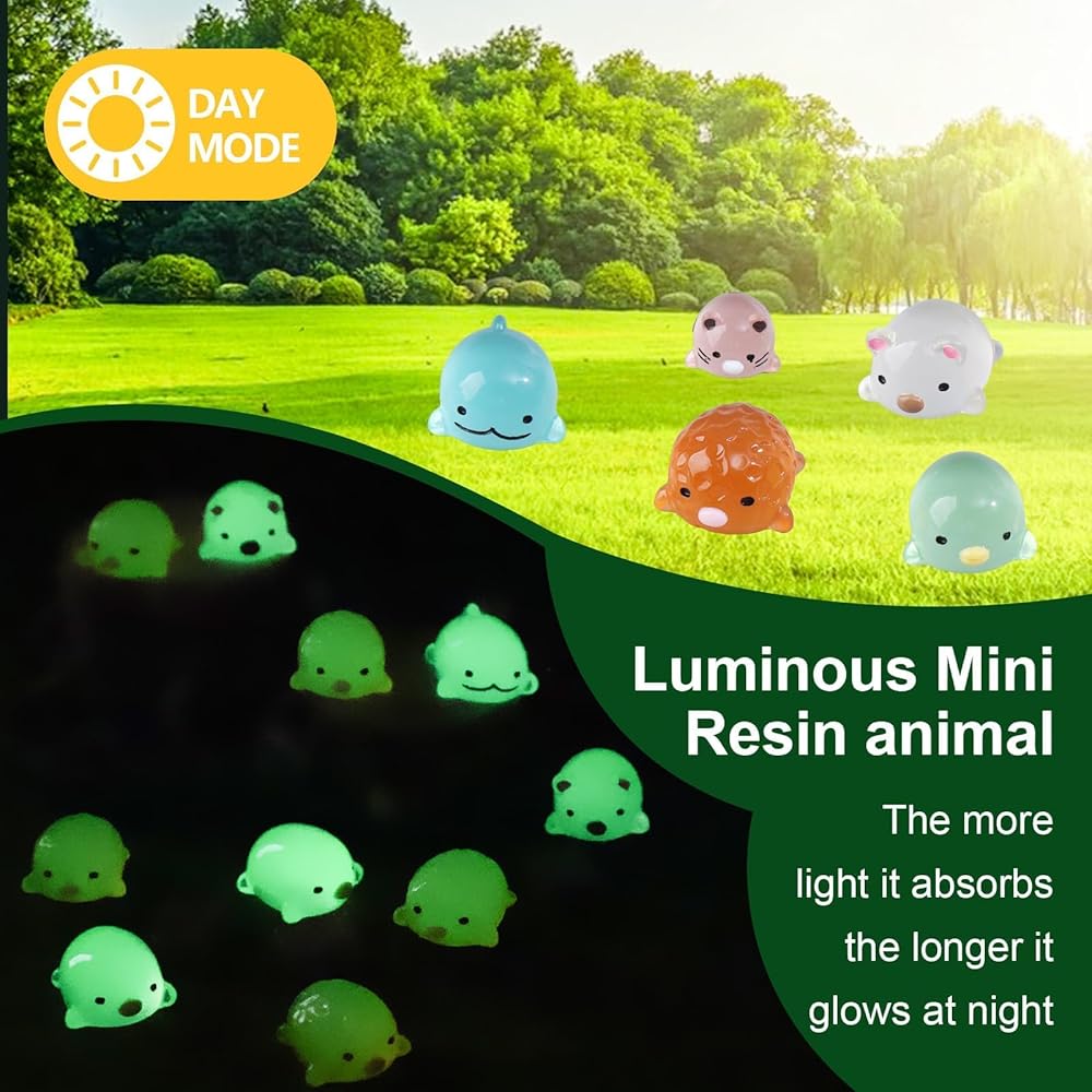 50 Pcs Cute and Slightly Style Resin Tiny Animals Mini Glow Creatures Mini Figurines Bulk Decoration Mini Garden Landscape Aquarium Doll House Decoration DIY Crafts Accessories