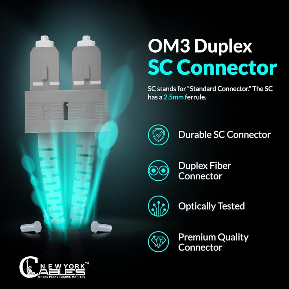HIGH QUALITY FIBER OPTIC ETHERNET CABLE | 1M, OM4 SC-SC Fiber Optic Patch Cable Multimode 10Gb is designed for high density applications in gigabit ethernet, fiber channel, local area networks, data center, Premises, Educational Campuses, Commercial Buildings and so on, ideal for connecting 10G SR, 10G LRM, SFP+ transceivers etc. for 10G/40G/100G Ethernet connections and is the preferred fiber specification for 10G Ethernet connections.