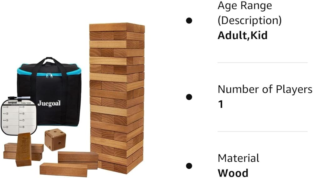 Super Fun: This giant tumble tower suitable for people of all age, great game for indoors and outdoors, perfect for family gathering, picnics, birthdays, parties and everyday backyard fun! Suitable for all kinds of people, whether children or adults, beginners or advanced players. Perfect for team building activities, create your own carnival game for hours of entertainment