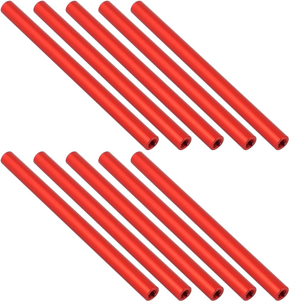 TOP-VIGOR 10Pcs M3 x 70mm Round Aluminum Column Alloy Standoff, Aluminum Standoff Spacer Column Stud Fastener for Quadcopter, Red