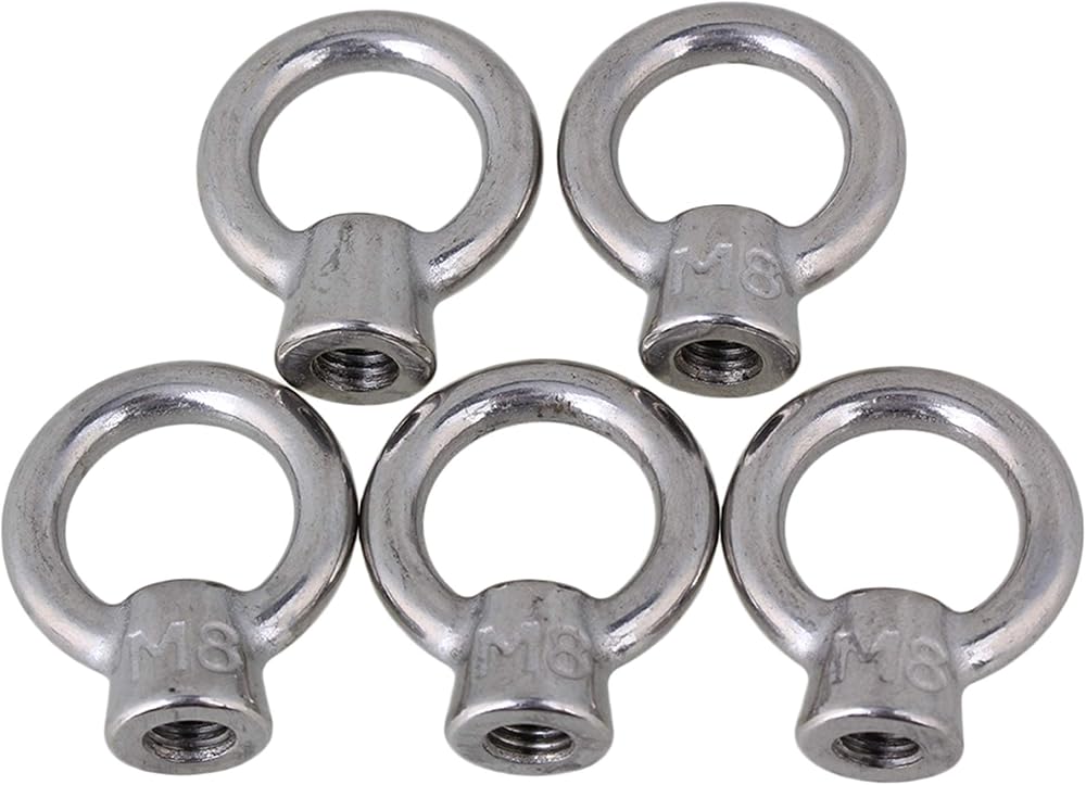 CNBTR Japanese Style Silver M8 304 Stainless Steel Ring Shape Lifting Eye Nut Set of 5