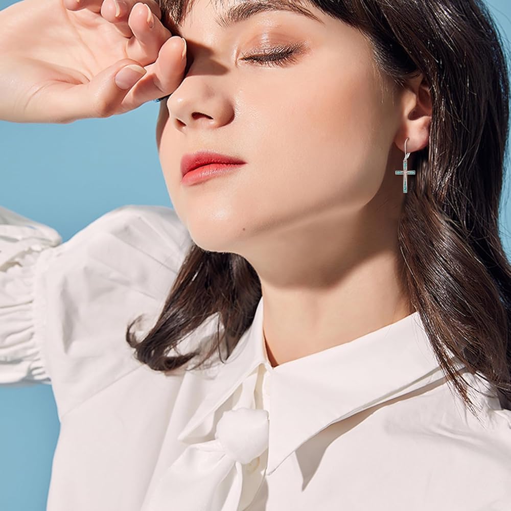 ❤Design:The cross drop earrings perfect fusion of Turquoise craftsmanship,fashion and charming.