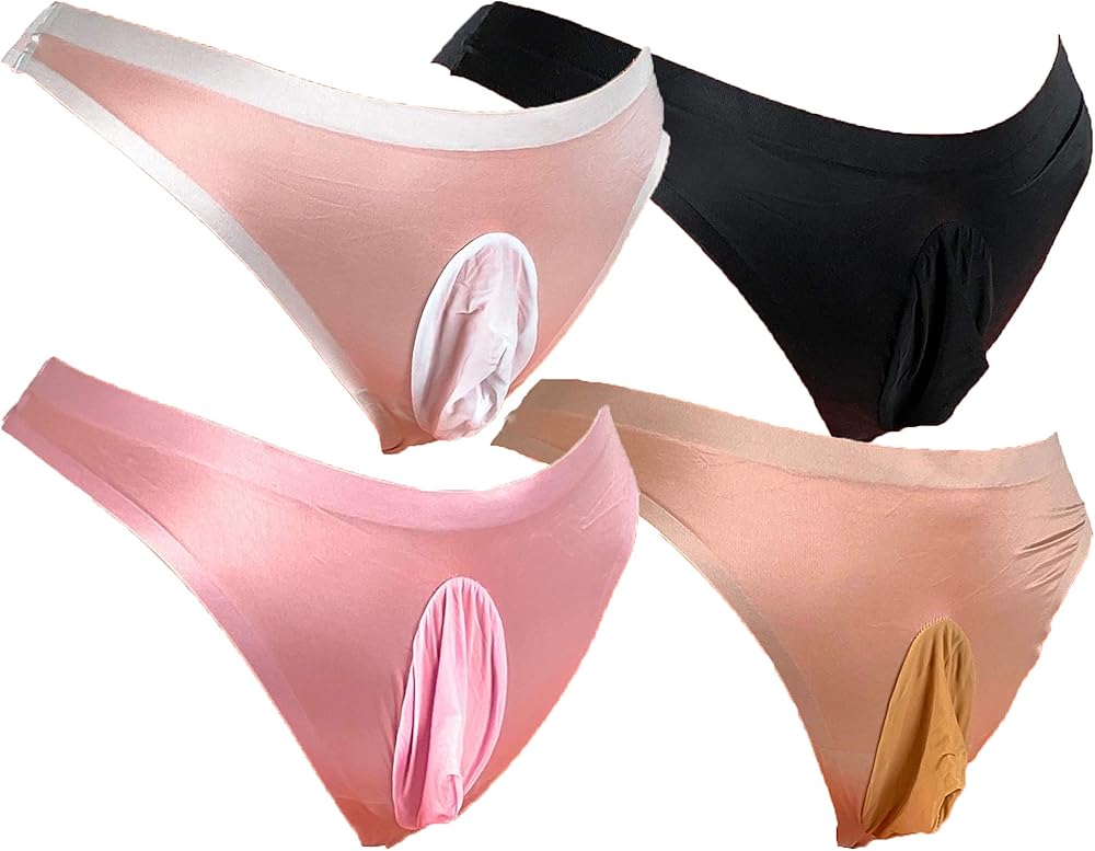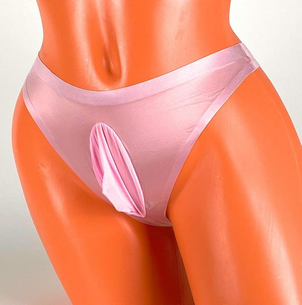 Soft ice silk panties with a lot of stretch. One size fits practically everyone, up to 40 inch hips. The material is highly elastic and will almost anyone around the hips and the pouch has plenty of room to expand.