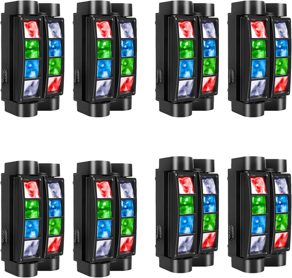 ❤Working Modes: LED spider light ensures large project range, Y1: 60-150 degrees, Y2: 60-150 degrees, 8 magic beams, each beam can not only create the effect of chasing light, but also continue to convert the swing.(Remote Control Not Included)