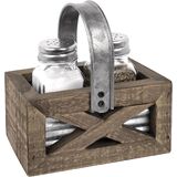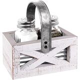 【Sturdy and Decorative】The warm wood and galvanized finish play off the cool glass and chrome shakers to make this is salt and pepper holder set a standout in your ranch home. Don't let its good looks fool you, this set is made to last.