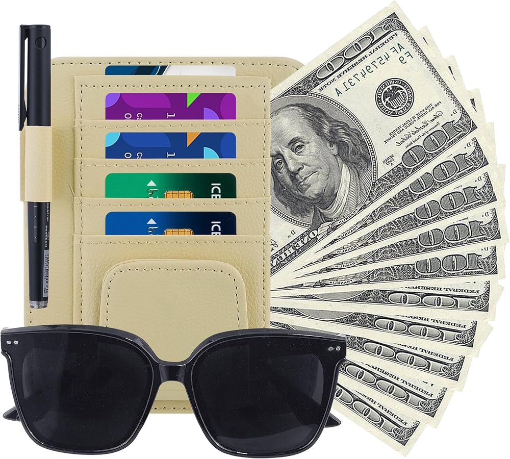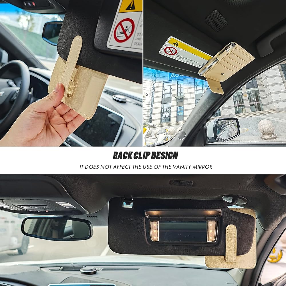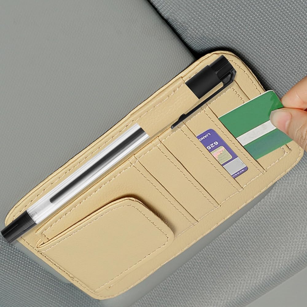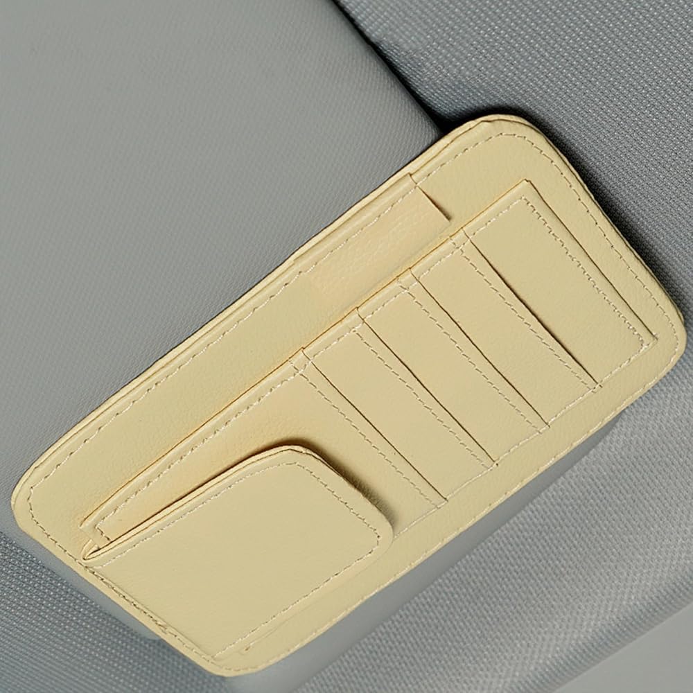 Car Sun Visor Organizer Clip, Small Car Card Sleeve Pocket Organizer, Car Visor Document Holder, Sunglasses, Car Registration/Drving License, Insurance Info, Pen, Note - Beige