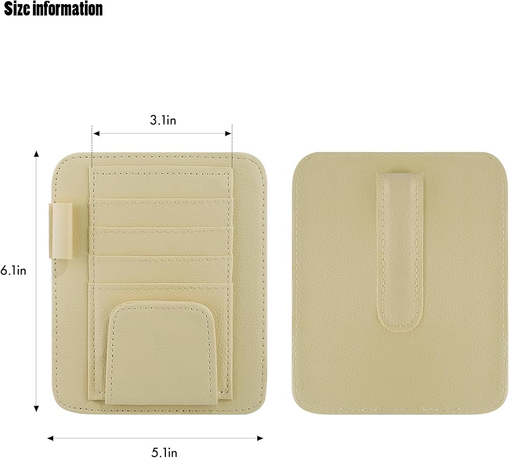 🚗No Effect to View : The size of our Car Sun Visor Small Organizer is (L)6.1 inch x (W)5.1 inch, only Covers About Area of the Car Sun Visor. Just clip the Organizer on the sun visor, and it can be securely attached to the sun visor without obstructing driver's view, safe and practical auto visor storage bag.