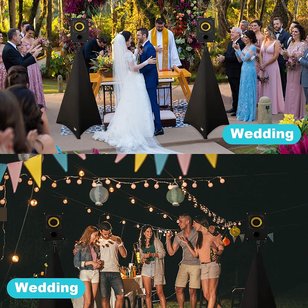 【Use in Multiple Place】Cover open size:about 74"×34"×34",The speaker tripod cover can be used in banquets, weddings, concerts or any event, it can give a clean and professional appearance,A must have for event DJs.