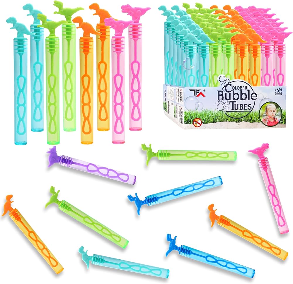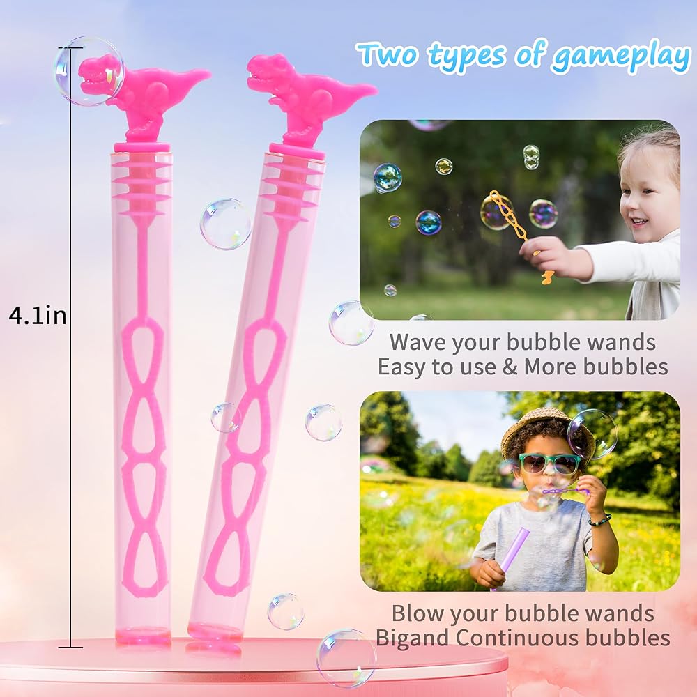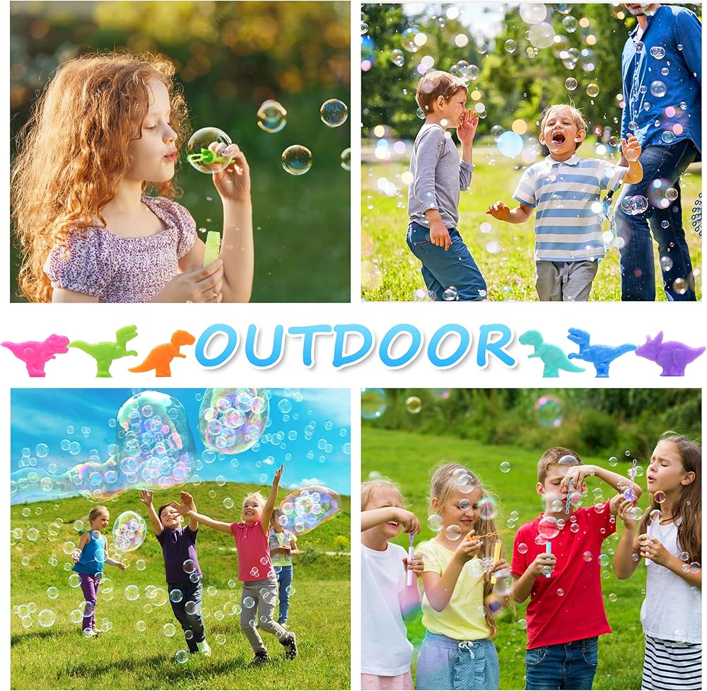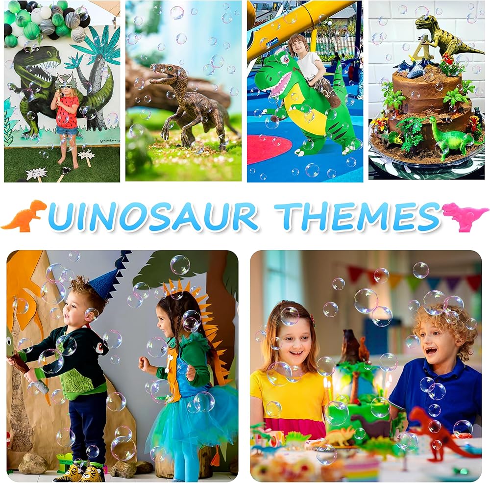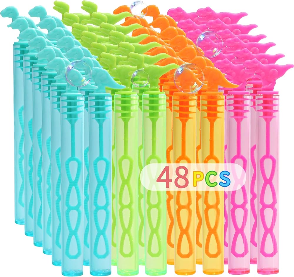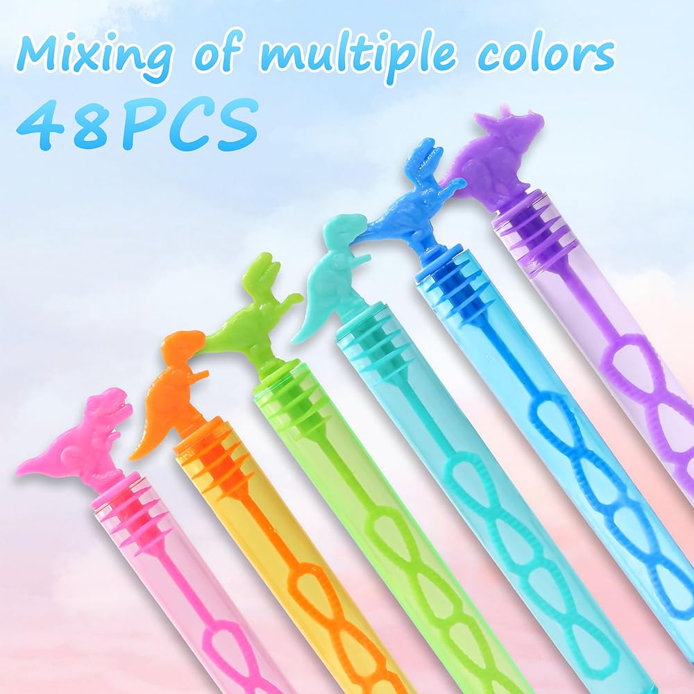 This set includes 48 miniature dinosaur soap bubbles in 4 colours: pink, yellow, blue & purple.