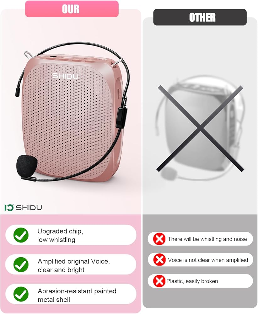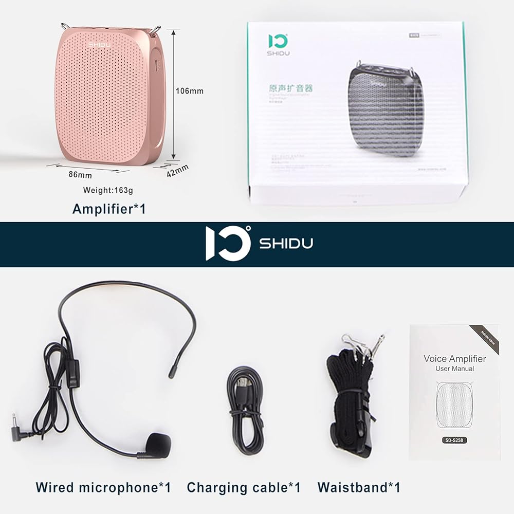 SHIDU Voice Amplifier Teachers,Megaphone Speaker Portable PA System with Microphone Headset(Work of 12hours) Supports MP3 Format Audio for Tour Guides Coaches Yoga Fitness Instructors