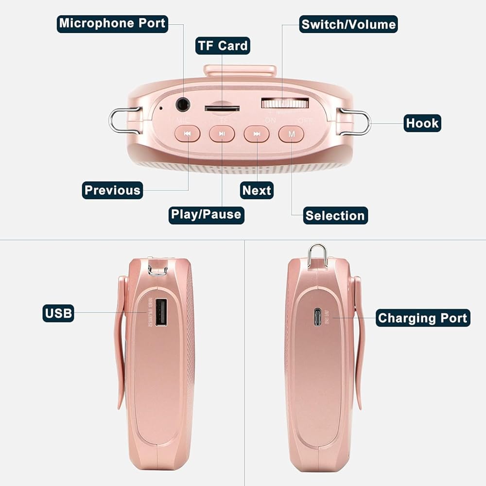❀【Long Battery life and Multifunctional】 - The voice amplifier with a 1800mAh built-in big rechargeable lithium battery provides 8 to 12 hours amplify time and 6 to 10 hours music time with a full charge.And the voice amplifier takes only 3-5 hours fully charged.And you can use it not only as a voice amplifier but a music player from a TF card or USB flash disk.