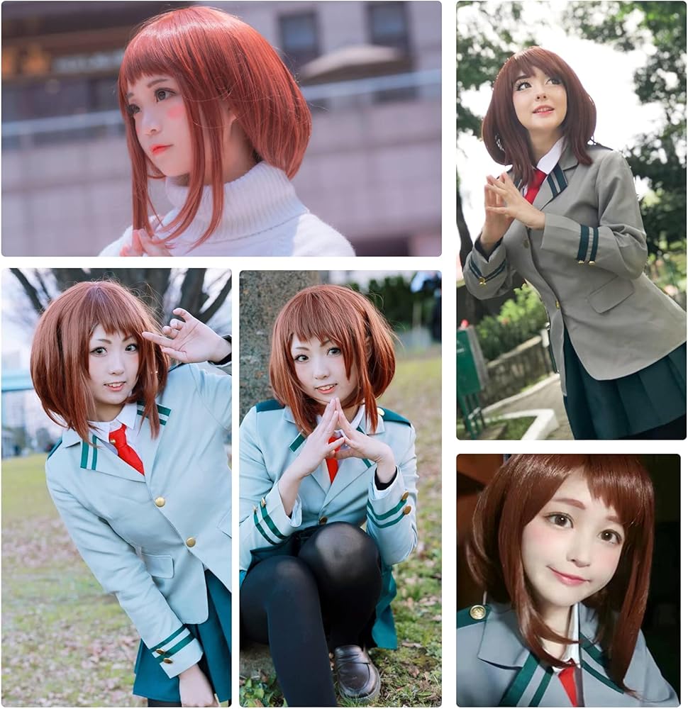 JoneTing Short Brown Wavy Wigs 【+Hair Cap】 Short Brrown Bob Wigs Brown Bob Cosplay Wig for Japanese Anime Cosplay Costume for Halloween Christmas Themed Party