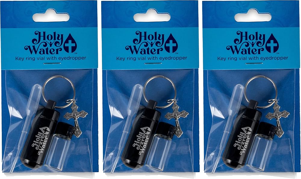 These anointing oil accessory kits are the perfect solution to taking your anointing oils and holy water with you wherever you go. Each kit comes with a 1/2 dram glass vial housed in a sturdy metal container with a screw-top lid for easy access, as well as a fine-tipped dropper for perfect and easy proportioning and distribution. The keyring attached to the lid of each keychain makes it easy to add these vial holders to any set of keys, keyrings, keychains, lanyards, or zippers. Always be prepared to do the Lord's work with these convenient holy water & anointing oil accessory kits. Holy water not included.