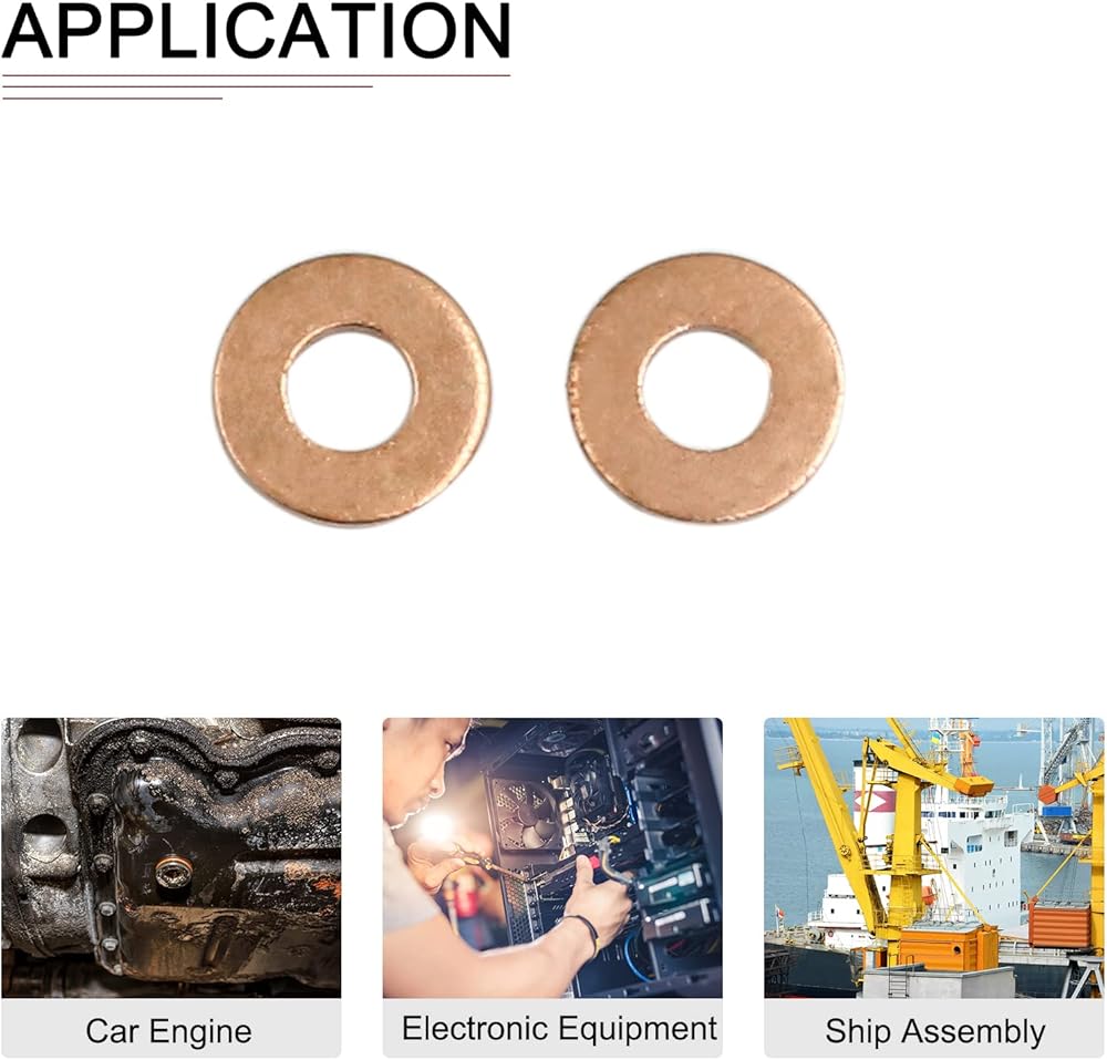 Feature - The flat copper sealing washer is widely used to reduce friction between the screws and nuts to make them more firmly fixed. Also it can distribute loads and increase the load bearing surface, providing a good connection to machinery.