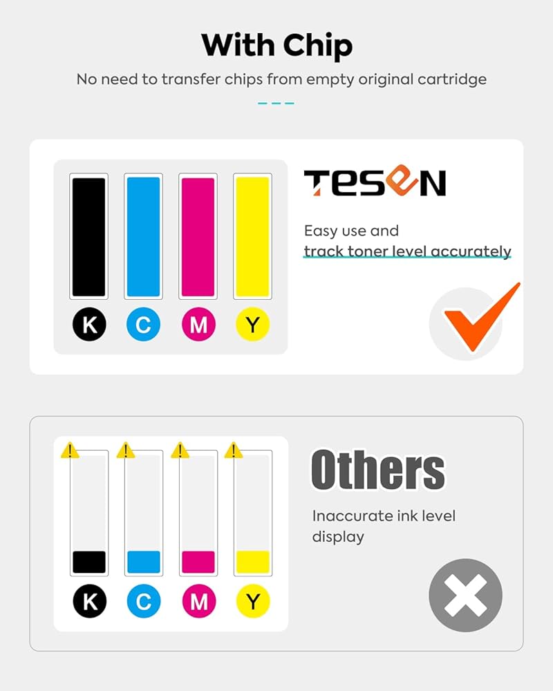 [With Chip] Tesen Compatible Cartridge Replacement for 206A 206X Toner cartridges hp set comes with bulit-in chip that shows remaining toner level accurately. No need to replace chips from empty original toner before use.