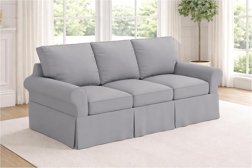 It is three seat sofa slipcover. It fits Pottery Barn's PB Basic sofa. The package includes 7 pieces. We only use high quality cotton material for this sofa cover, and we run a number of tests to make sure that our cover fits well. The package includes one set of sofa covers.
