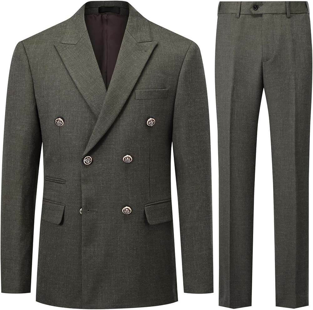DESIGN: This solid blazer features peaked lapels, double-breasted with two-button closure, four-button cuffs, a decorative chest pocket, 3 utility flap pockets, attached lining with two built-in pockets; these pants features two slant pockets, two button-closure back pockets