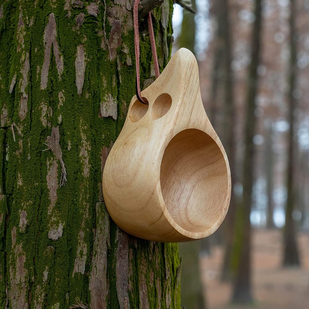 Portable Wodden Cup Nordic Style Kuksa Camp Cup Outdoor Coffee Mug for Camping Backpacking Hiking Hunting Bushcraft