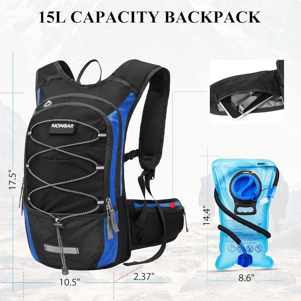 NONSAR Hydration Backpack, Hiking Backpack with 3L Water Bladder, Lightweight Insulation Hydration Pack, Water Backpack for Hiking, Cycling, Running, Festival, Camping for Men Women