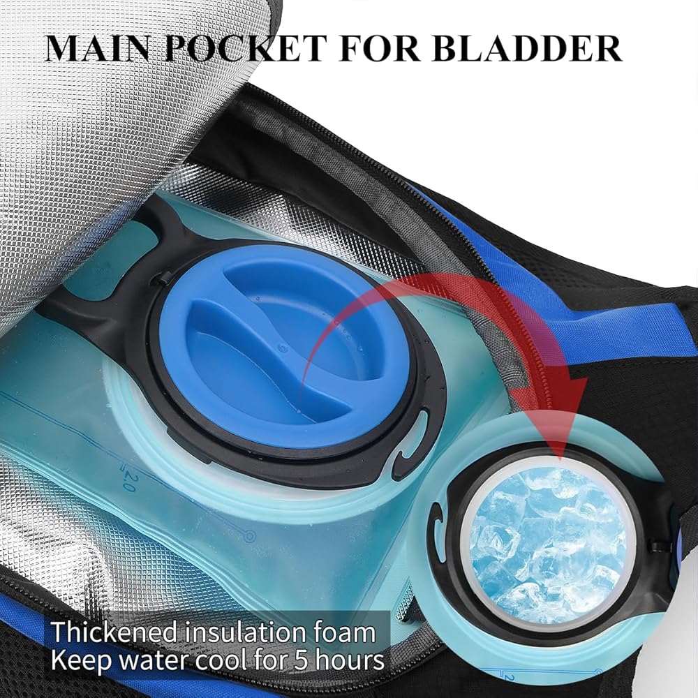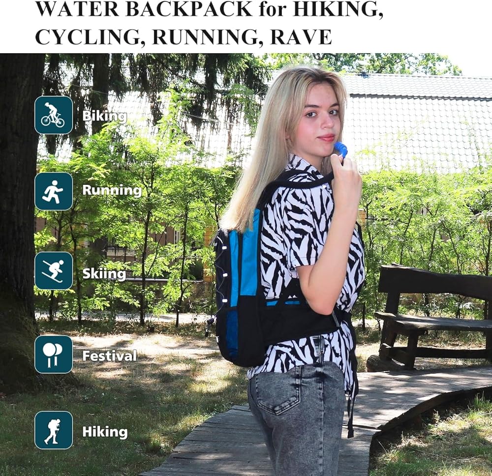 🚵♂️CONTAIN 3L HYDRATION BLADDER: Water backpack for hiking with 3L bladder, with the insulated bladder compartment, keep liquids cool for up to 5 hours.The bladder is BPA-free, odor free, and anti-leak guaranteed.Food-grade material.Leakproof bite value, water flows fast for easy drinking and never drips on when locked.Convenient and frees up your hands.