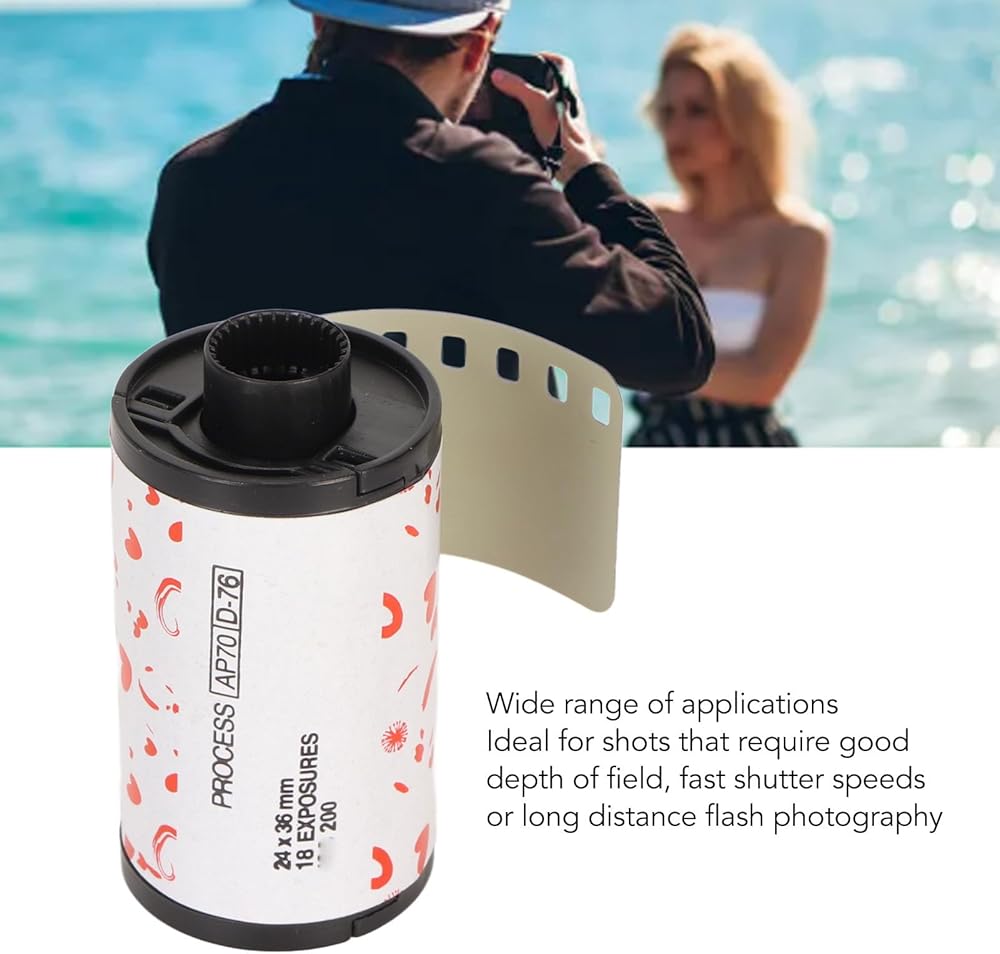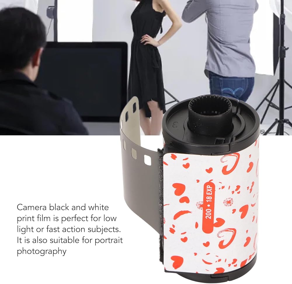 Professional 35mm Black White Print Film, 18 Exposures, 200 Degree Light Sensitivity, Medium Contrast, Suitable for 135 Cameras, Ideal for Low Light or Fast Action Shots
