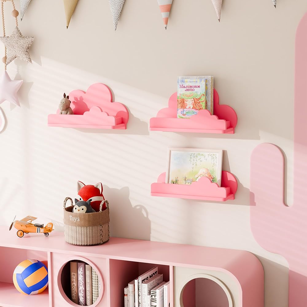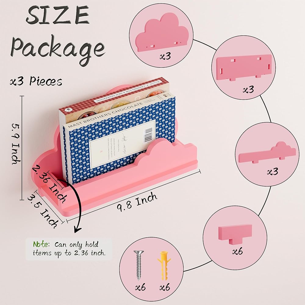 【Save More Space】A set of 3 cloud shelves, decorate your child's room with these beautiful and affordable floating tray shelves that make efficient use of the walls and are beautiful to look at. Don't miss out on the opportunity to organize, store and create more floor space with this set.
