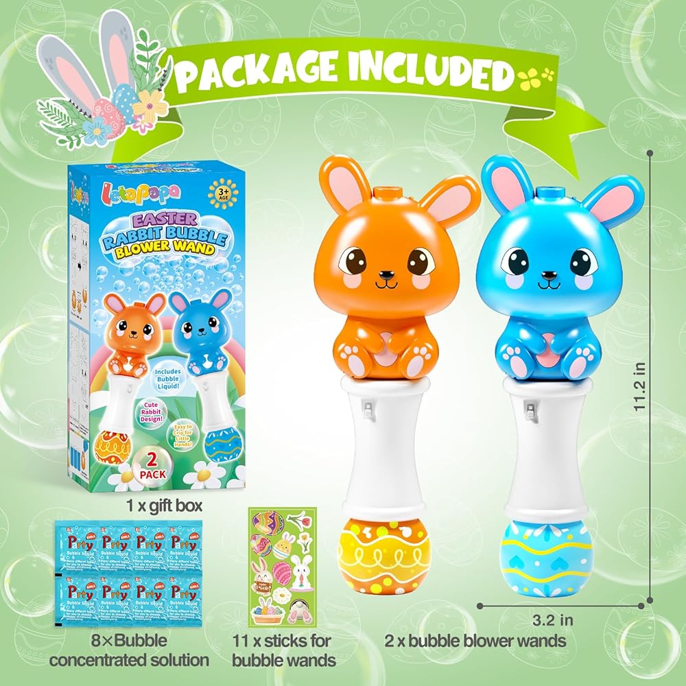 Letapapa 2 Pack Easter Bubble Wands for Kids, 11.2 inch Automatic Bubble Blower with Light for Girls Boys, Bubble Toy for Easter Party Favor, Easter Basket Stuffers
