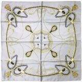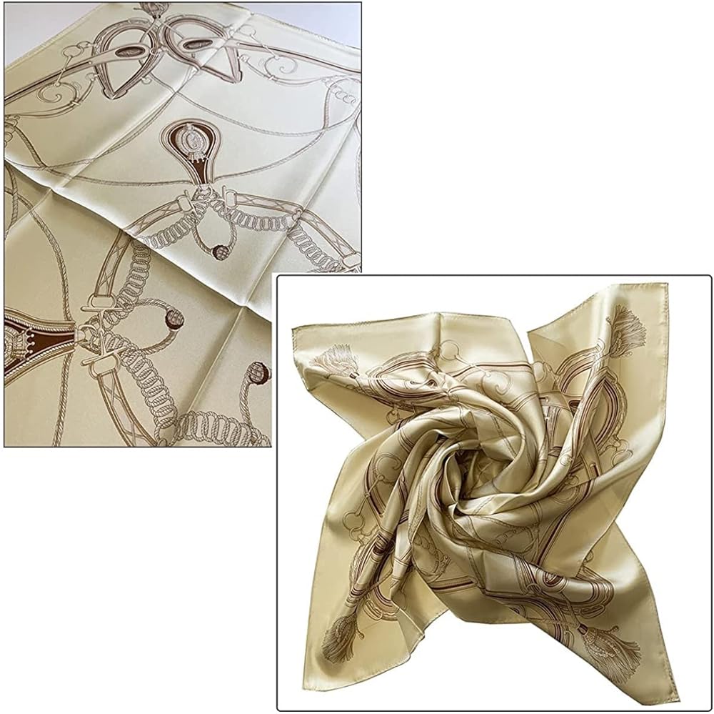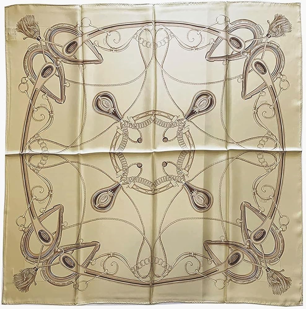 Fashionable screen printed silk scarf, Name: #9848 Simple Harness, Special Gift Cased, Colour: Cream / Beige / Grey / , Material:100%Silk Twill, Size:35x35in 88×88cm, Made in Japan, (conform to 16 CFR Part 1610)