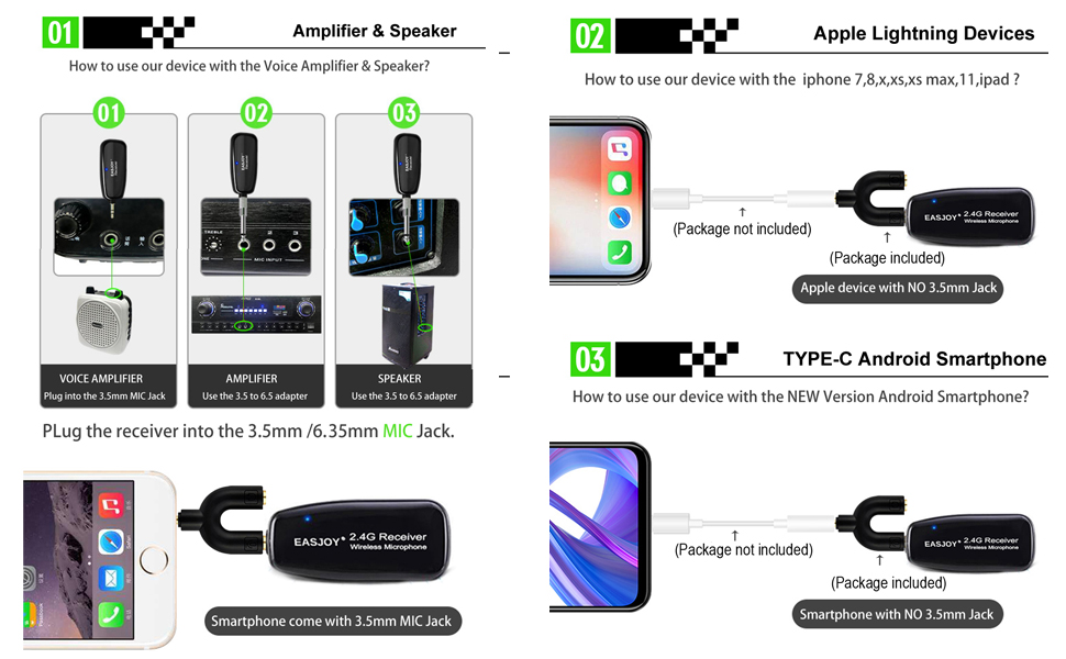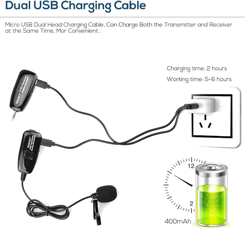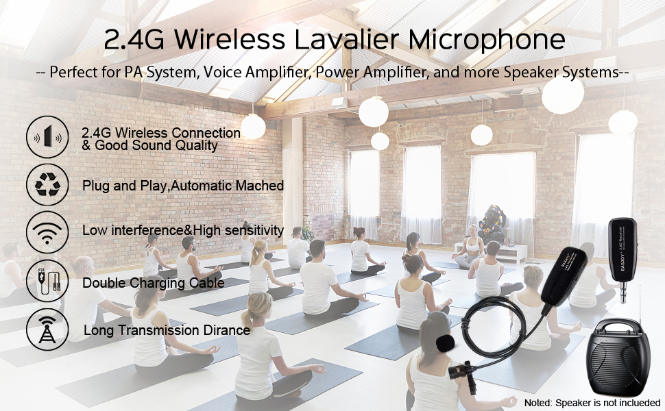 STABLE SIGNAL & CLEAR SOUND: The wireless lapel microphone system has adopting the international 2.4Ghz Wireless transmission, continuous frequency matching, The distance range is within 50ft in an open field without degradation of the audio response, .it's compatible with smart phones(Need use with "Y"adapter which include in package))/PC/Speaker/voice amplifier/PA System(Not support Aux / digital audio system/don't have bluetooth capable.)
