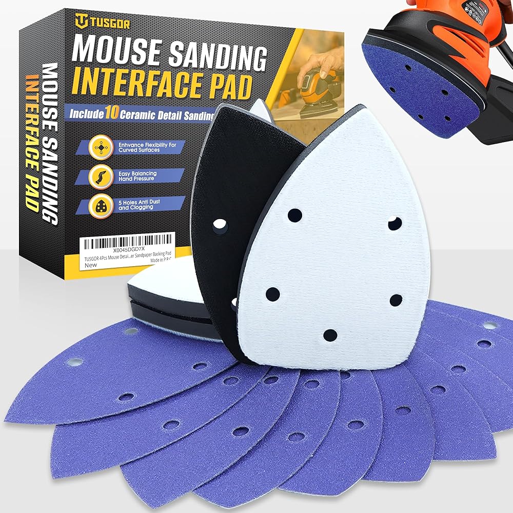 [Quick Hook & Loop Design]: The hook and loop design mechanism in our pads is designed for swift and efficient changes of abrasives, enabling the reuse of partially utilized abrasive materials. One side has a HOOK surface for attaching sanding discs, while the other side features a LOOP surface for attaching sanding pads. The package includes 4 Pcs of Mouse sanding interface pads + 10Pcs Ceramic Mouse Detail Sanding Disc.