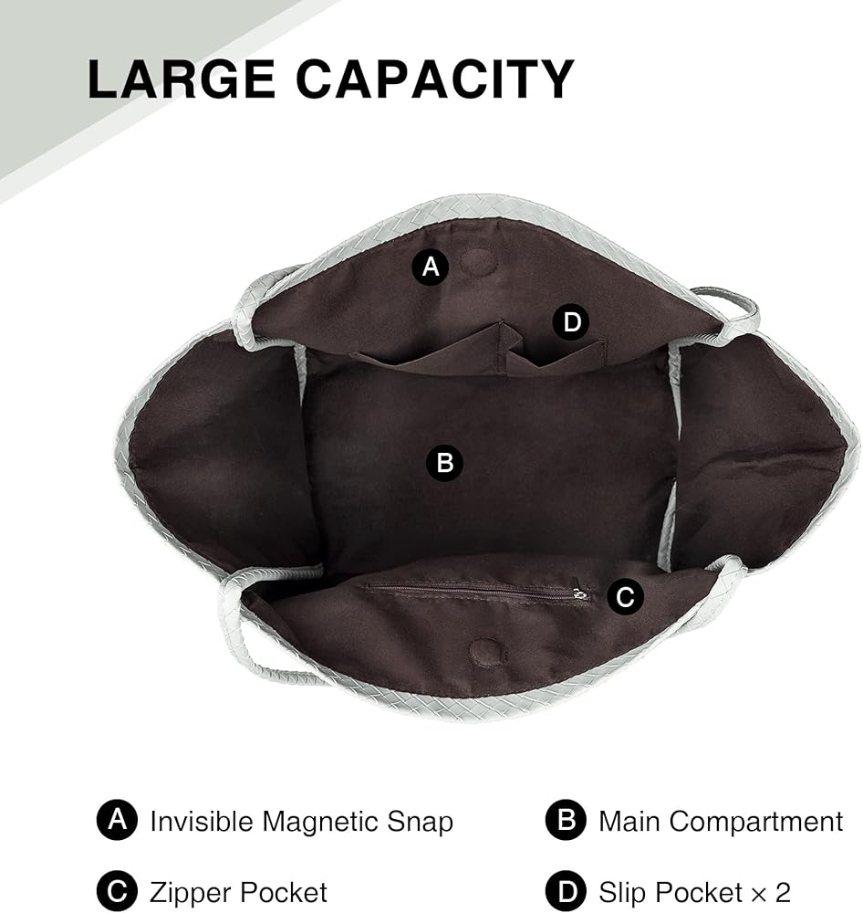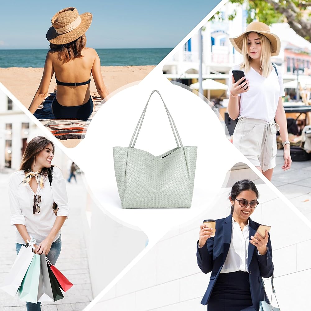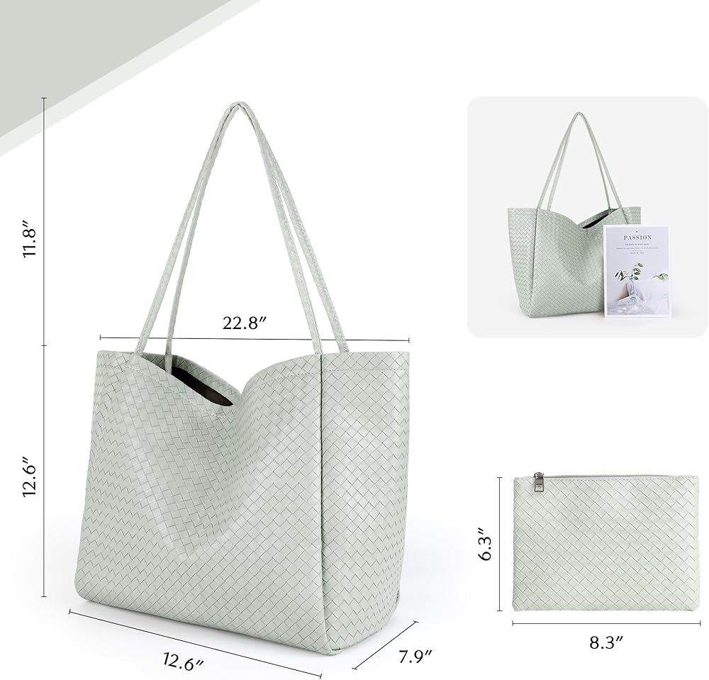 [ Elegant Design ] With its stylish design featuring an intricate embossed weave pattern, this tote adds a touch of elegance to any outfit. Crafted from high-quality vegan leather, it's both fashionable and durable. Perfect for any occasion, this tote is a must-have accessory for those who appreciate timeless style.