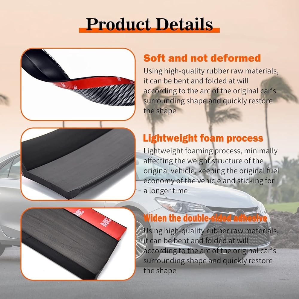🚖 Universal Size: The car front bumper lip is applied to 95% cars, trucks, SUV. Its universal compatibility allows it to be placed on many kinds of car models. It also can protect your car from scratching.