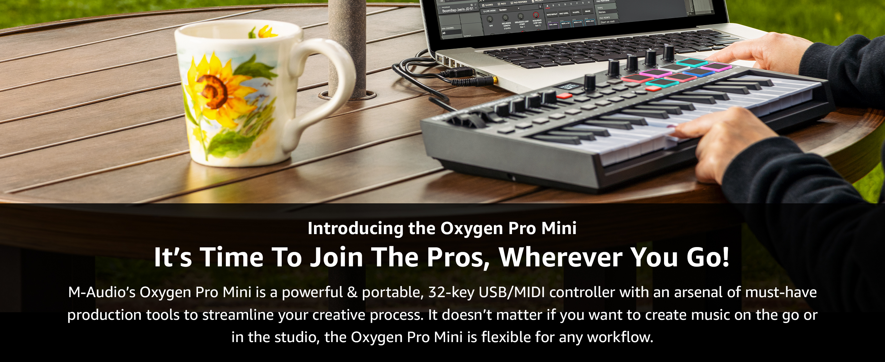 Fusing 32 best-in-class, velocity-sensitive, semi-weighted mini keys with a built in arpeggiator, 8 RGB, backlit, assignable, velocity-sensitive drum pads with Note Repeat, 4 assignable knobs, buttons and faders, Oxygen Pro Mini comes complete with everything you need to get the most out of your virtual instrument collection and DAW.