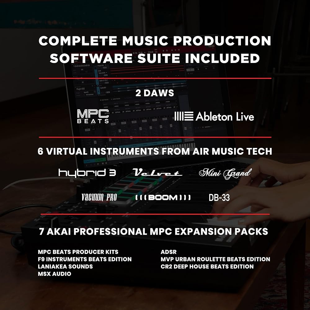 Record, sequence, arrange and mixdown your tracks with a choice of two professional DAWs including MPC Beats and Ableton Live Lite. Find and create any sound imaginable with a virtual instrument collection from legendary developer AIR Music Tech and dive into a world of cutting-edge sound content with a collection of Expansion Packs from Akai Professional's legendary MPC Series.